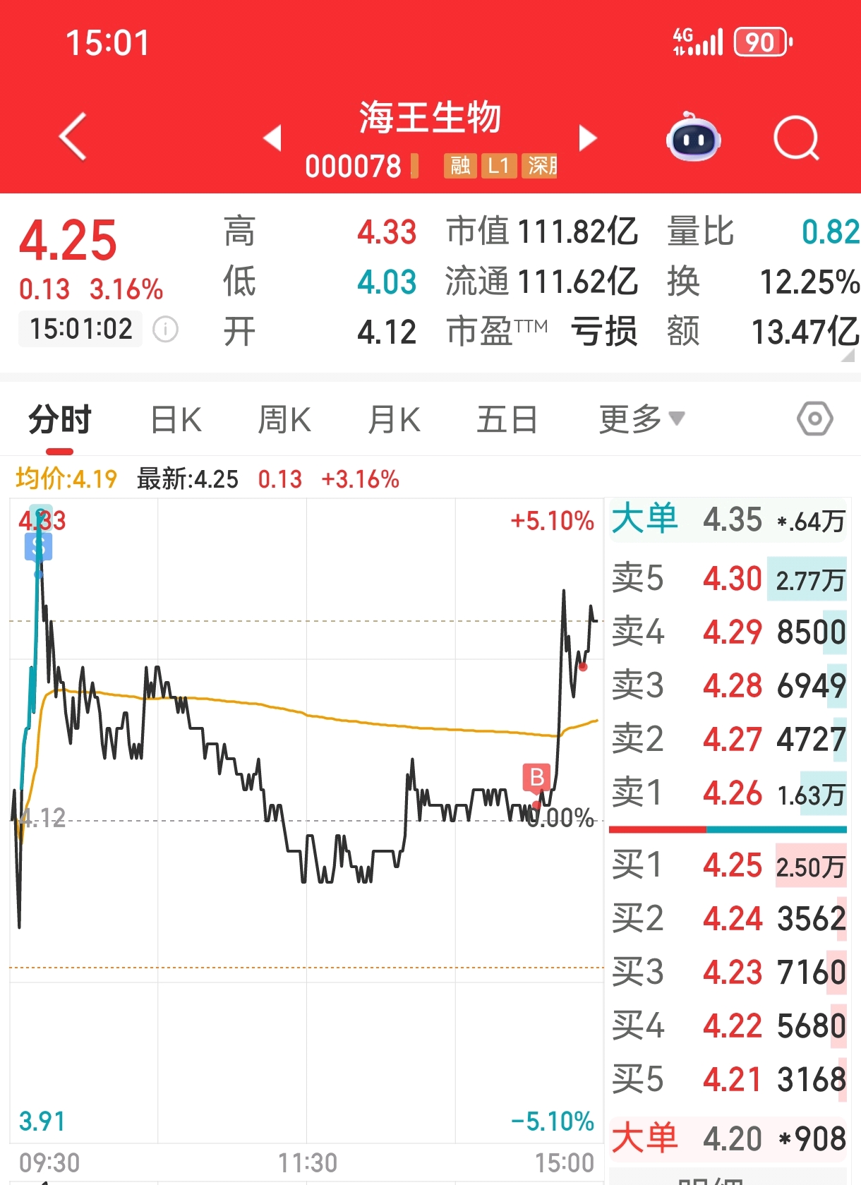 $海王生物(SZ000078)$ 收盘了很开心,今天我要为我自己的操作疯狂点赞,大家一起发财!#炒股日记#