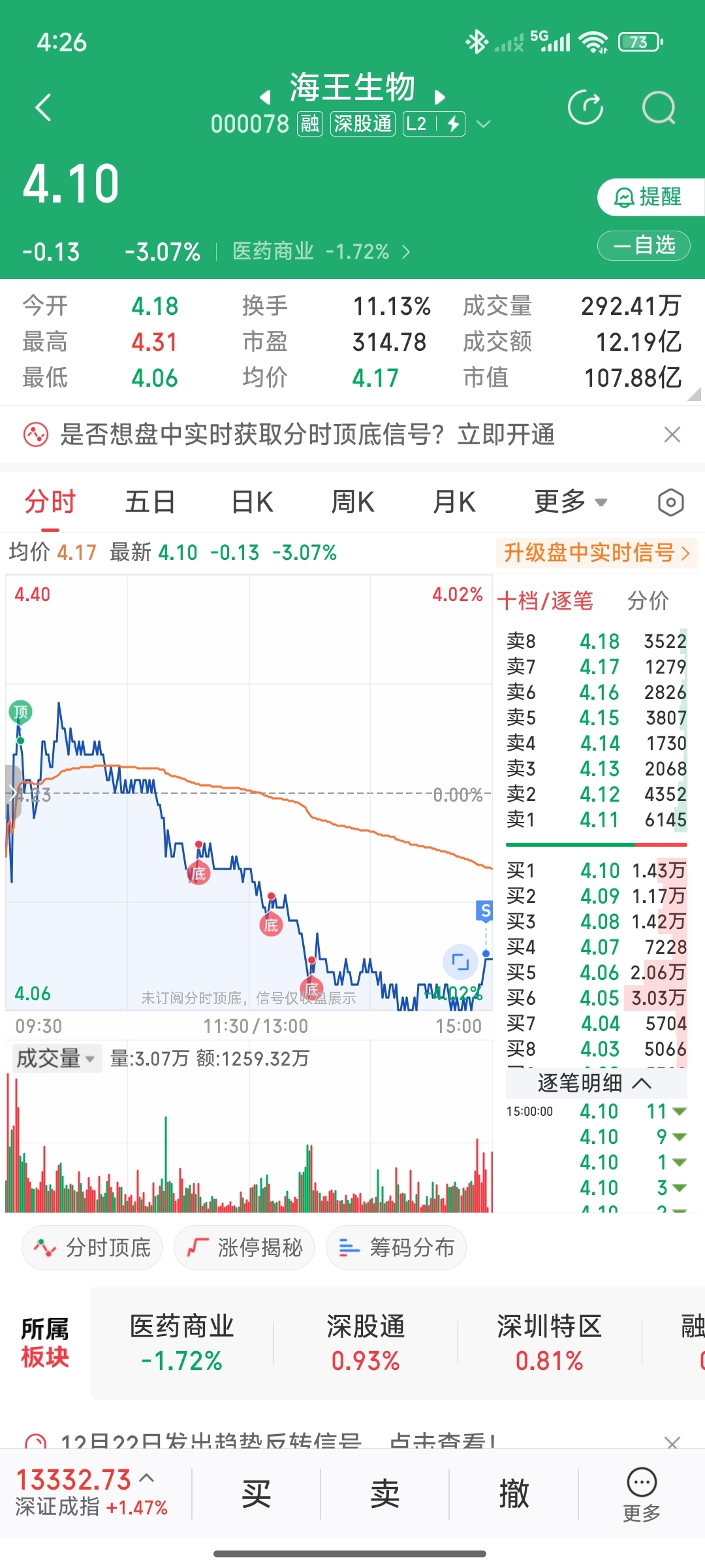 $海王生物(SZ000078)$ 尾盘卖了!!卖的迟了!!!