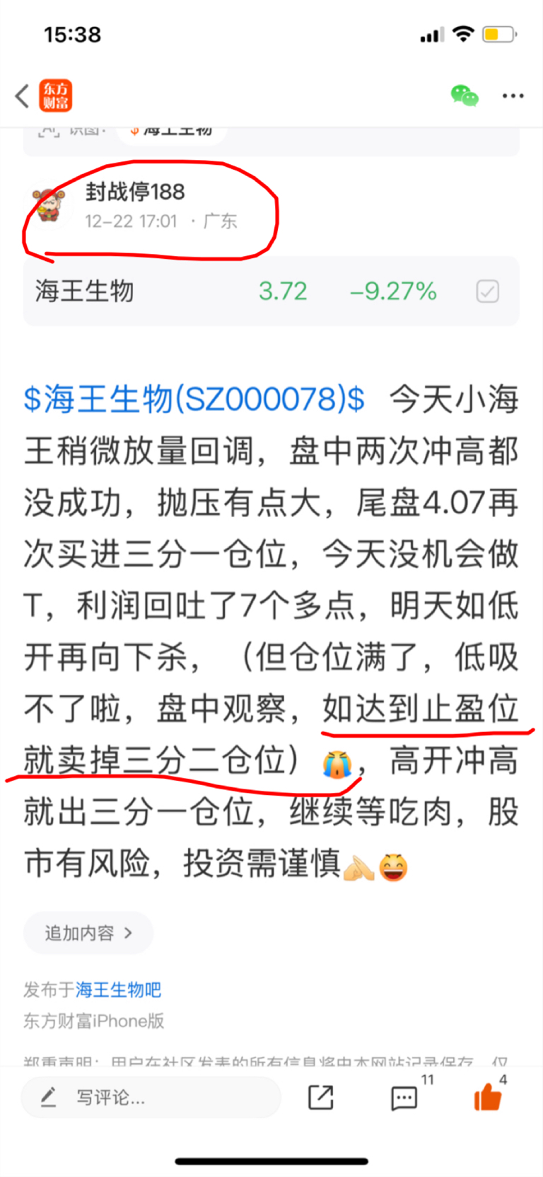 小海王今天放量大跌,走势暂时看,是走坏了,在两个多点止盈了(本来打算留三分一仓位