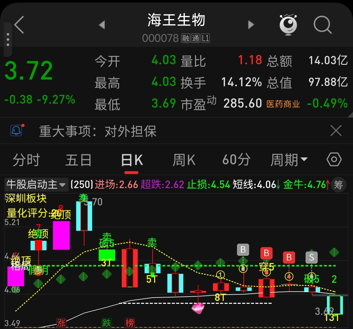 $海王生物(SZ000078)$ 昨天走了,今天就奔着跌停去了,本想吃个涨停再走,昨天开盘低于预期直接闪人