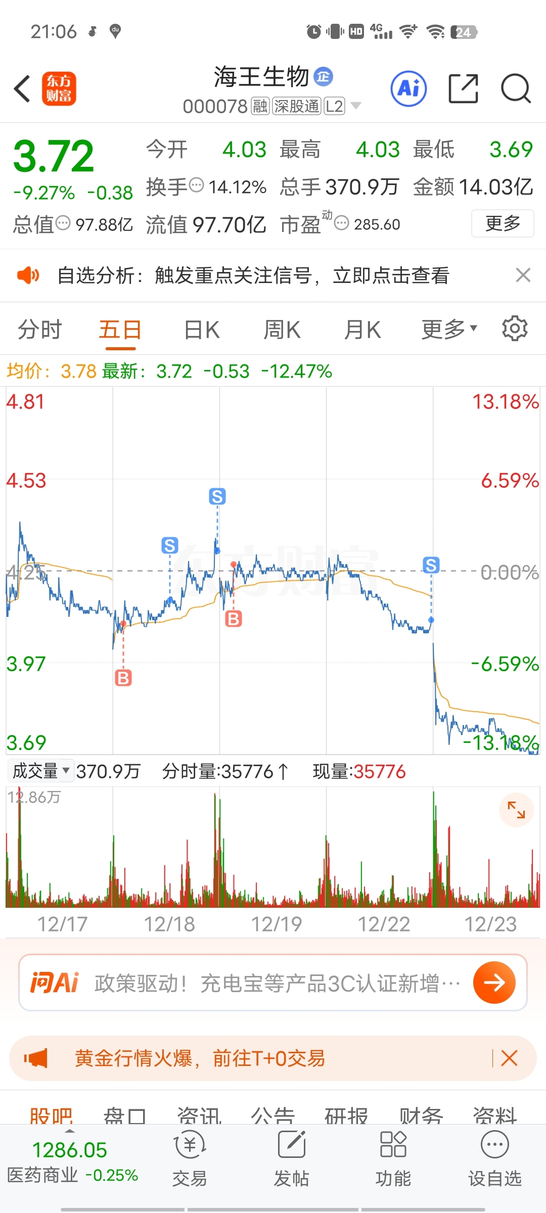$海王生物(SZ000078)$ 都是带血的筹码的,以后这种筹码我不吃了,太醒了,赚一条阳光利群走人。