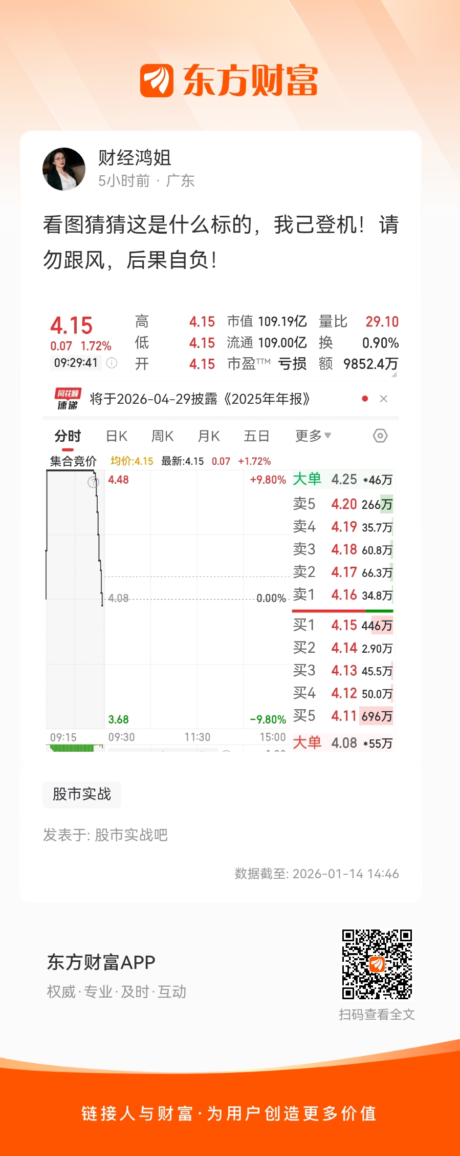 温馨提示: 1.根据《证券法》规定,禁止编造、传播虚假信息或者误导性信息,扰乱证券市场;2.用户在本社区发表的所有资料、言论等仅代表个人观点,与本网站立场无关,不对您构成任何投资建议。用户应基于自己的独立判断,自行决定证券投资并承担相应风险。《东方财富社区管理规定》