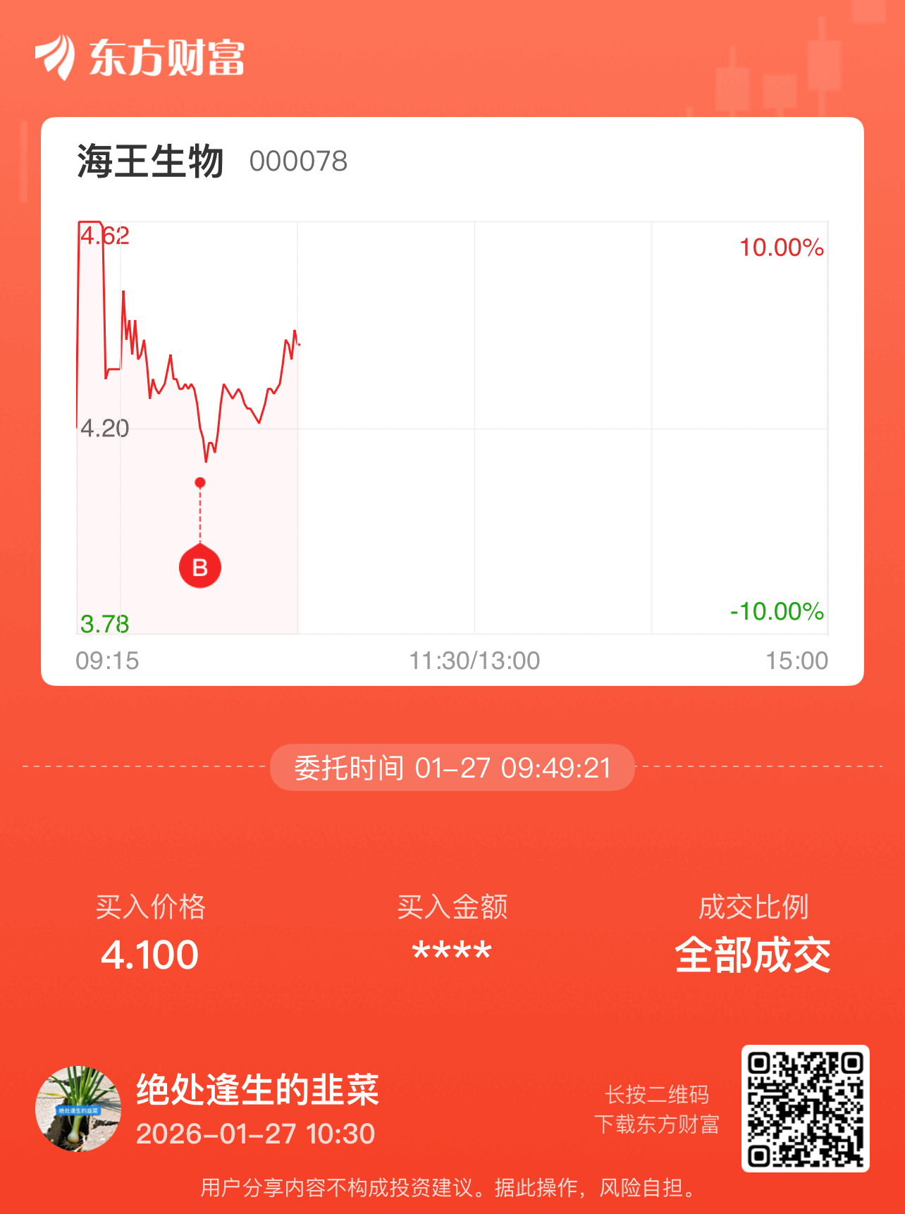 温馨提示: 1.根据《证券法》规定,禁止编造、传播虚假信息或者误导性信息,扰乱证券市场;2.用户在本社区发表的所有资料、言论等仅代表个人观点,与本网站立场无关,不对您构成任何投资建议。用户应基于自己的独立判断,自行决定证券投资并承担相应风险。《东方财富社区管理规定》