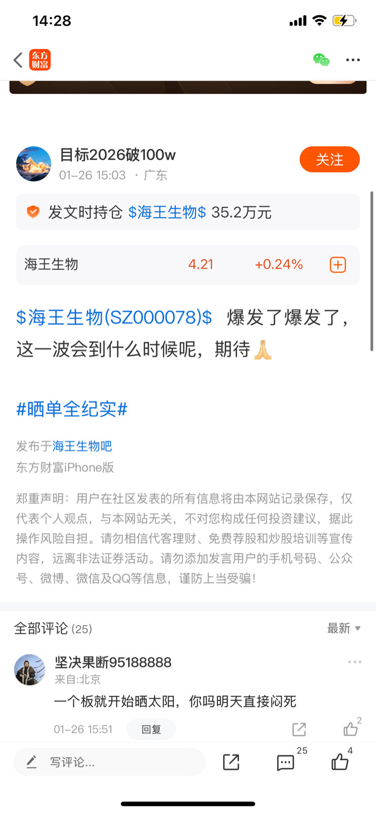 这股吧里的撒贝小白是真多,你吗一个涨停就晒单,特吗的,老子之前海王生物吃了60多