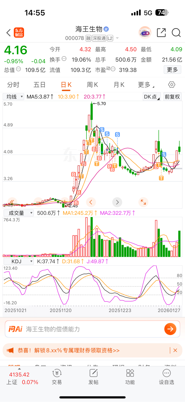 $海王生物(SZ000078)$ 上次二板坑了我一次,这次坚决不入