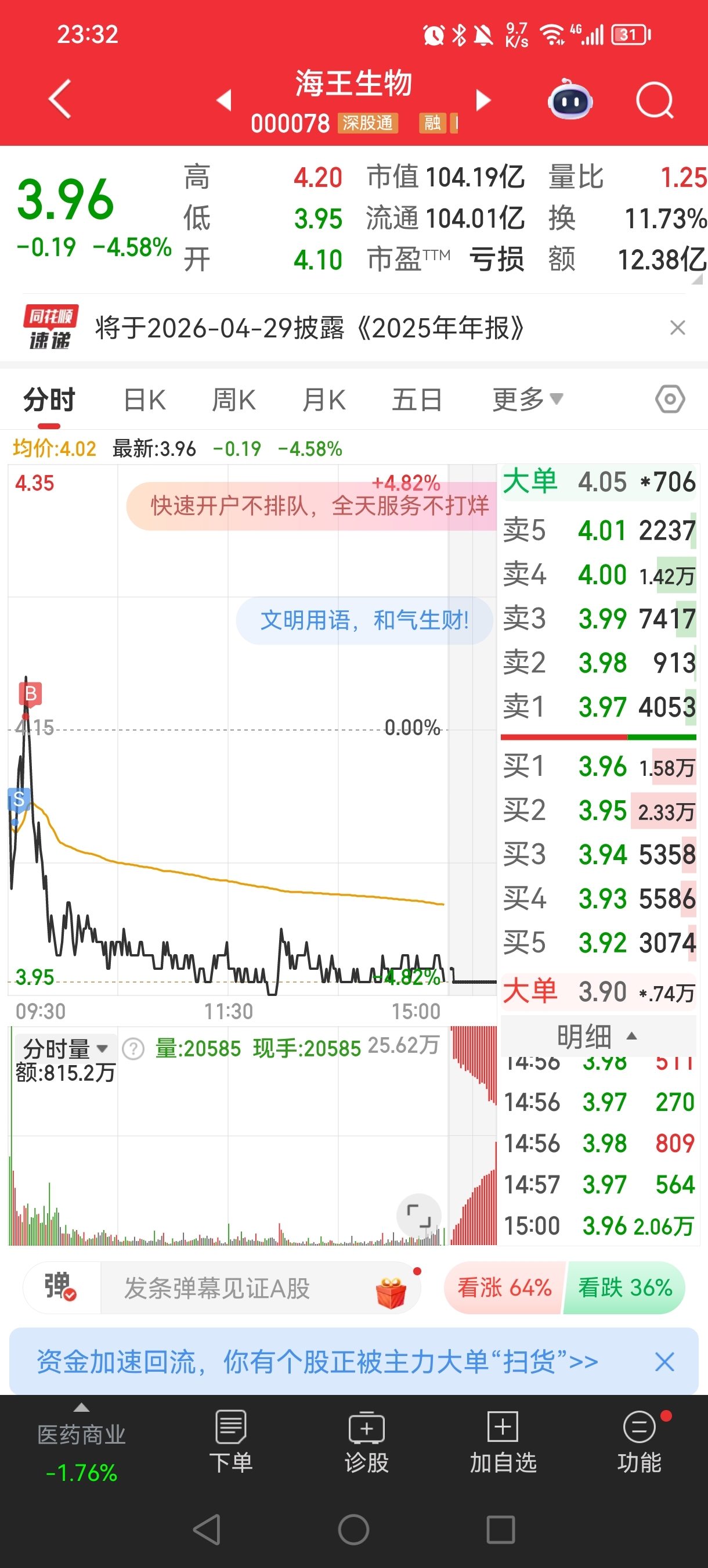 $海王生物(SZ000078)$ 来回收割????