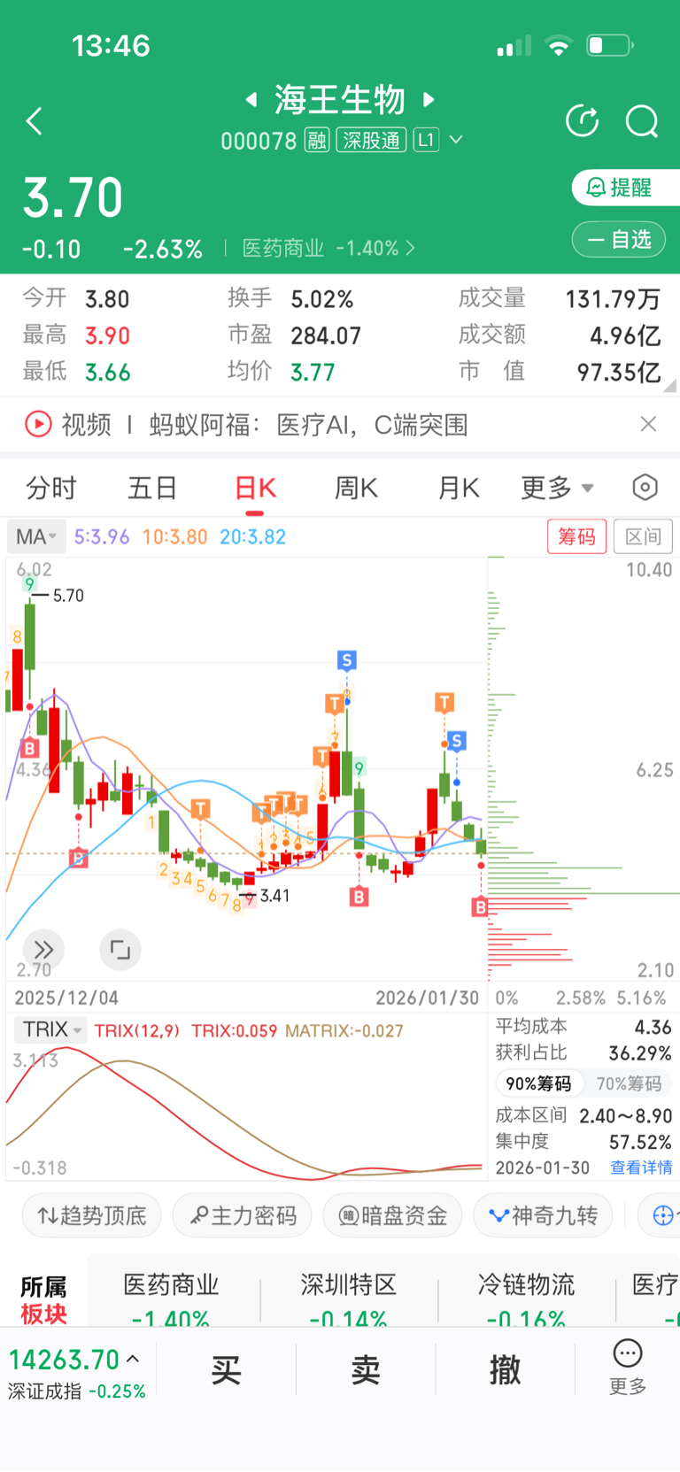$海王生物(SZ000078)$ 操作了两个月都没回本,你小子够狠