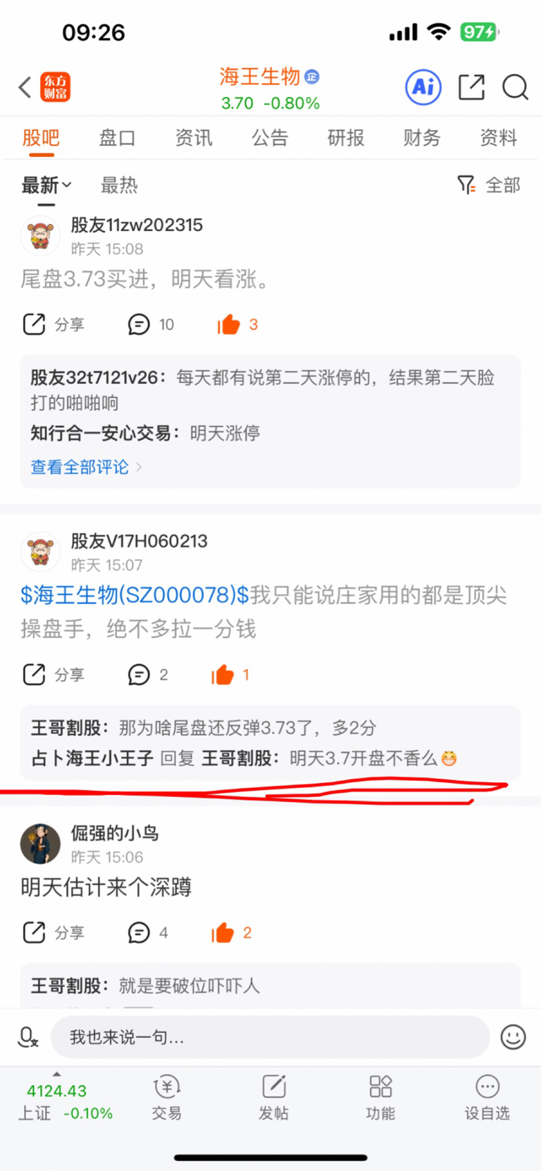 温馨提示: 1.根据《证券法》规定,禁止编造、传播虚假信息或者误导性信息,扰乱证券市场;2.用户在本社区发表的所有资料、言论等仅代表个人观点,与本网站立场无关,不对您构成任何投资建议。用户应基于自己的独立判断,自行决定证券投资并承担相应风险。《东方财富社区管理规定》