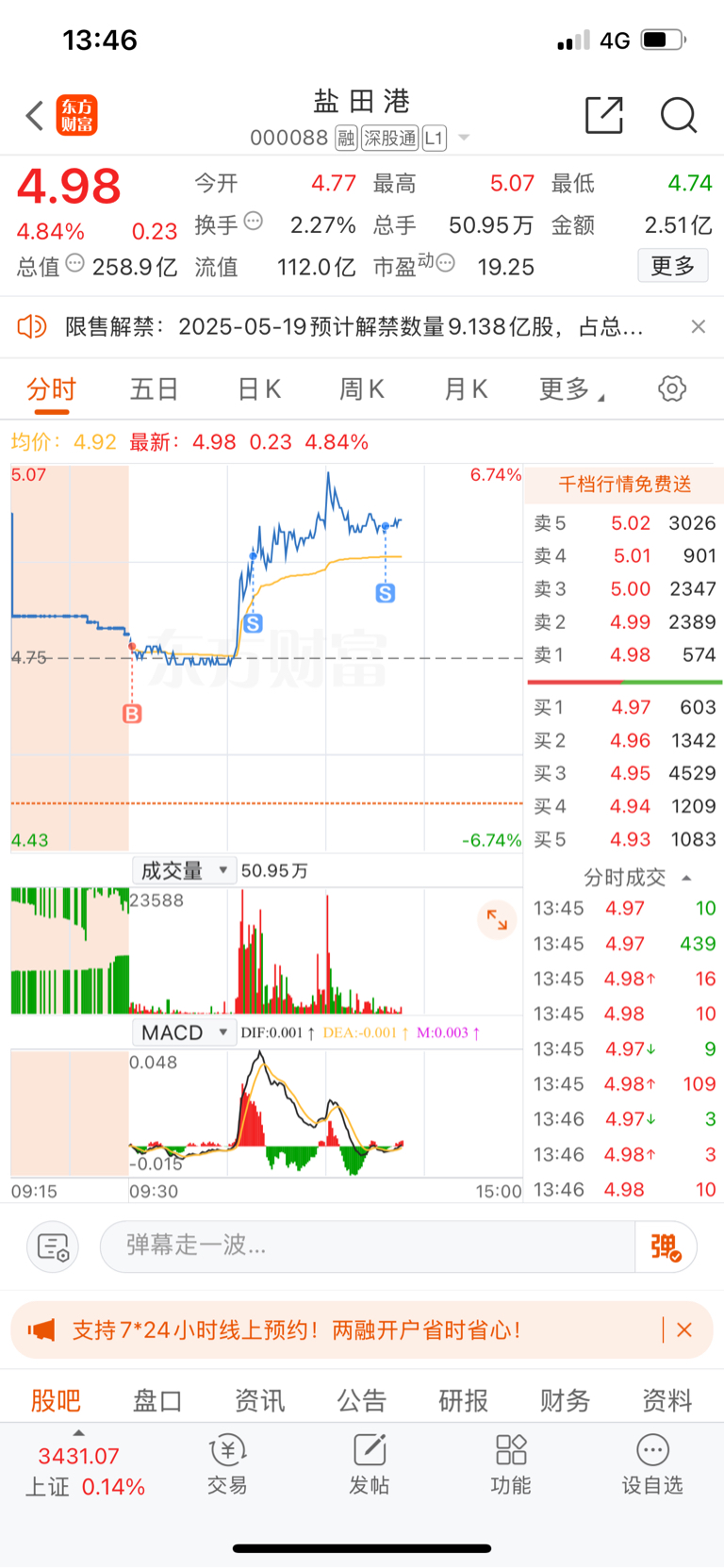$盐 田 港(SZ000088)$ 你涨停吧,让我后悔吧