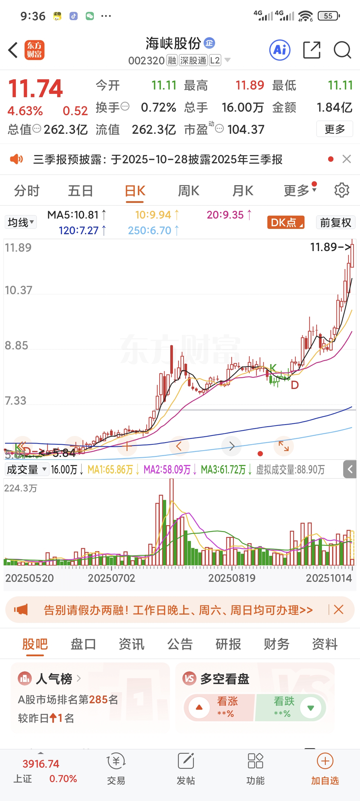 $盐 田 港(SZ000088)$ 你是海峡股份的二股东。