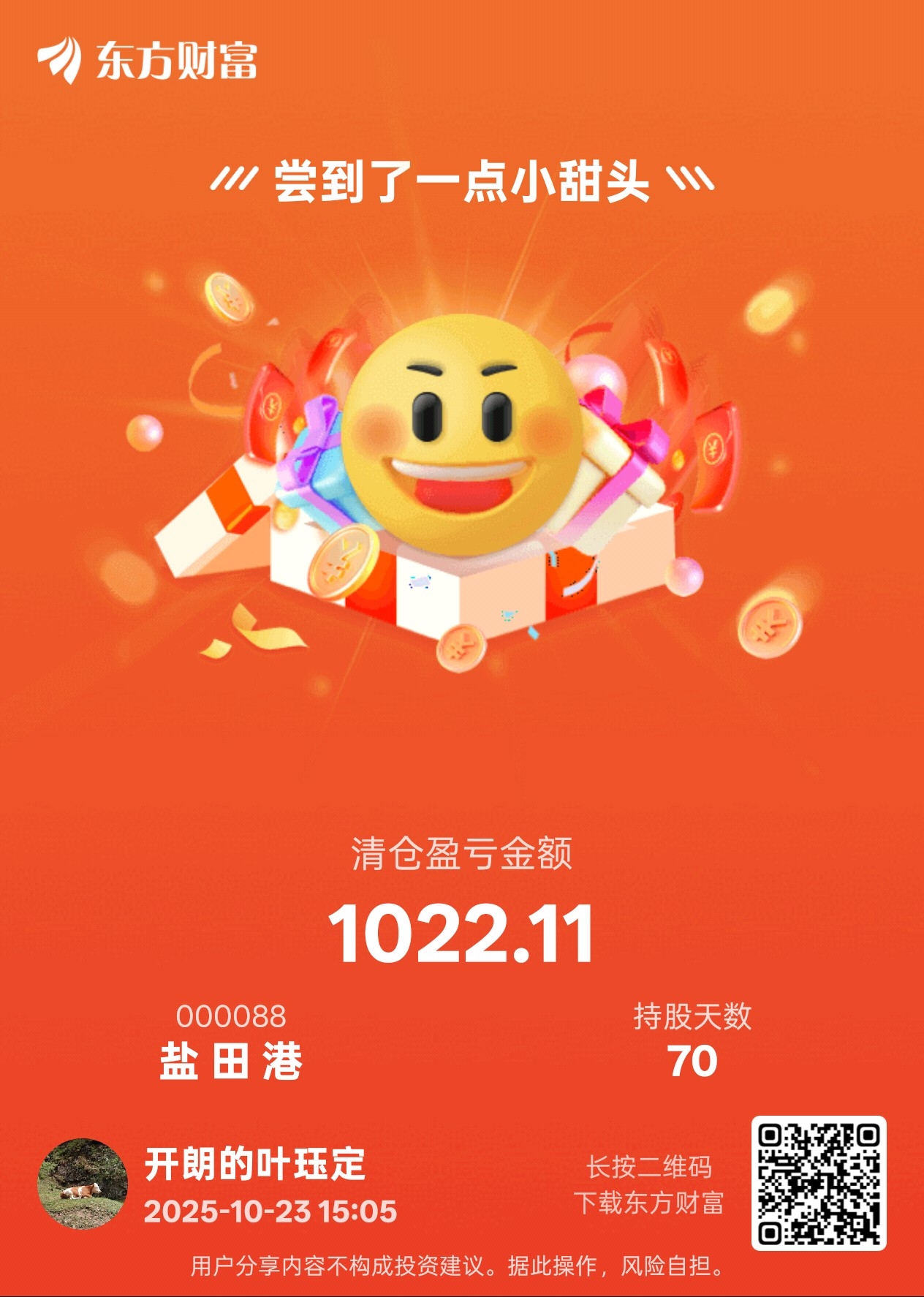 买了一个多月,终于解套了,赚多赚少,盈利就好!留下的发财