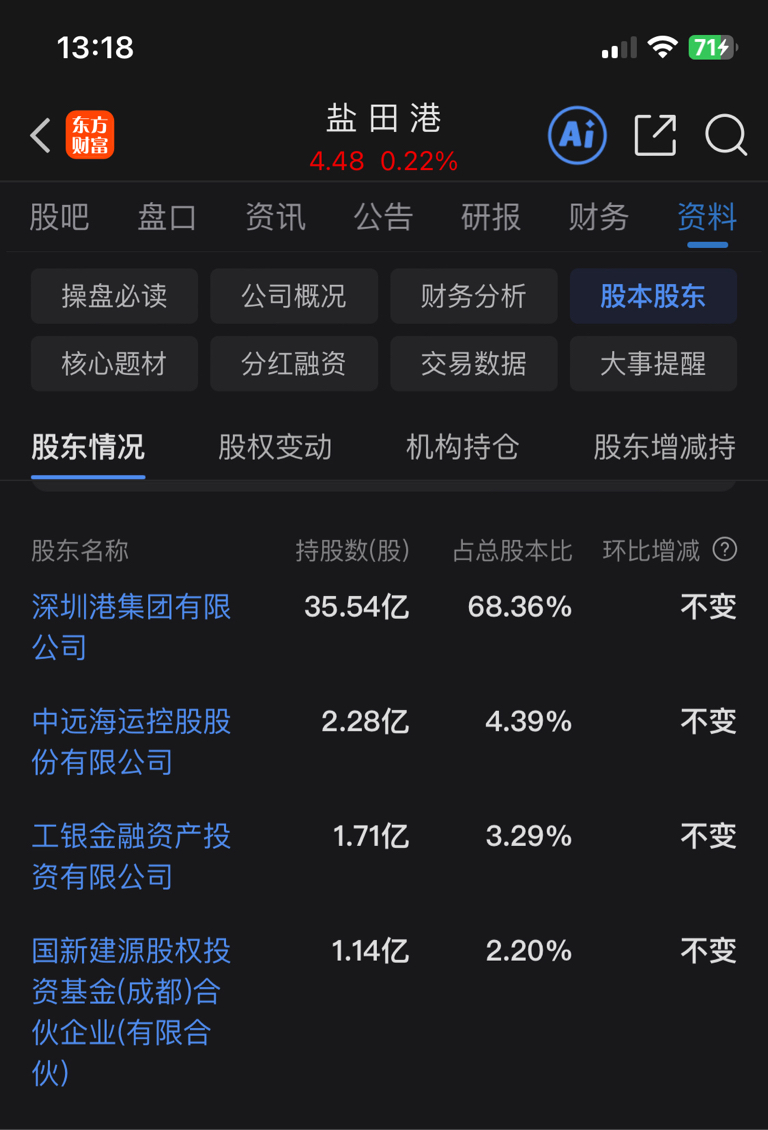 $盐 田 港(SZ000088)$ 第一股东持股太多了,收集不到筹码,主力放弃!成本太高!