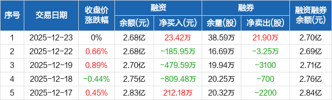 盐田港:融资净买入23.42万元,融资余额2.68亿元(12-23)