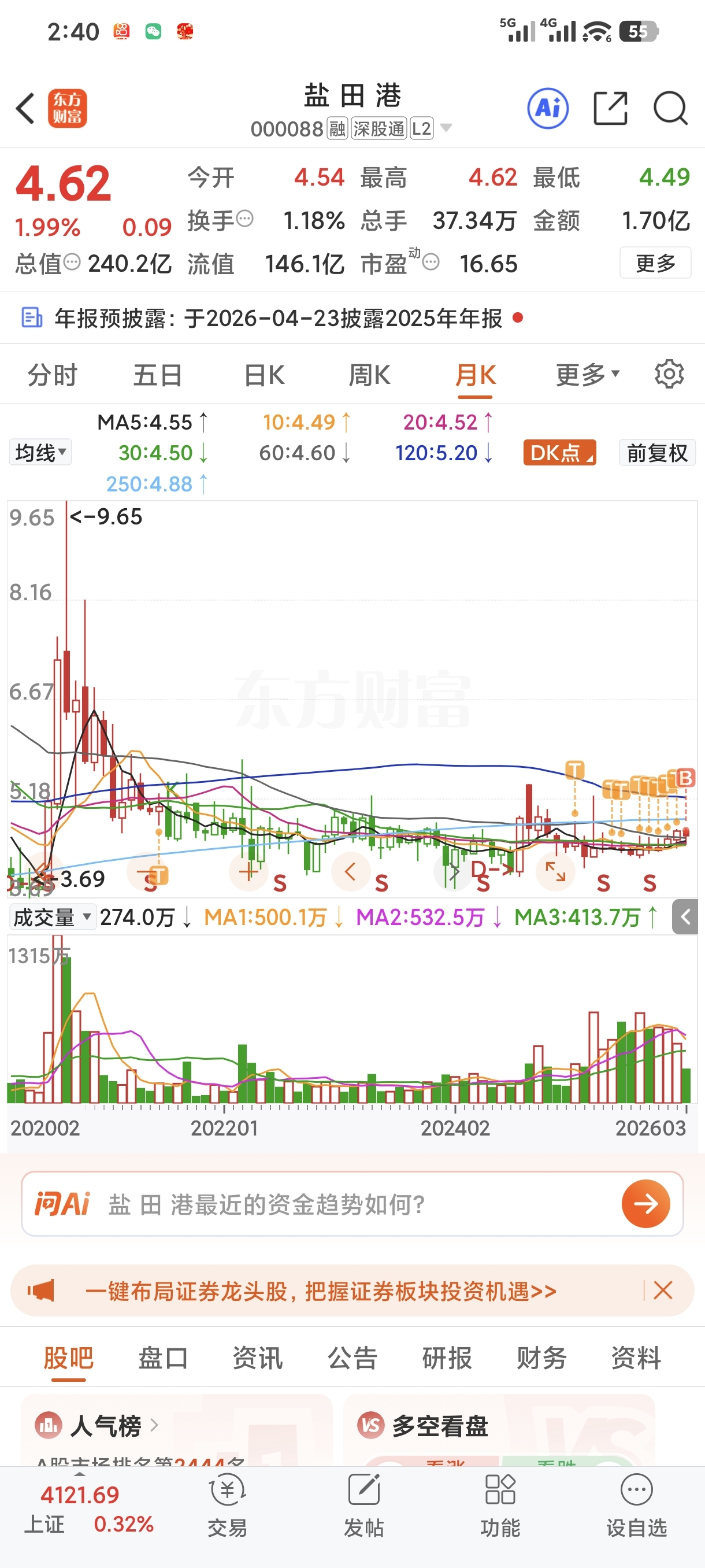 $盐 田 港(SZ000088)$ 吸筹吸了几年了,应该快起来了吧!只有想不到,没有涨不到,这样子。