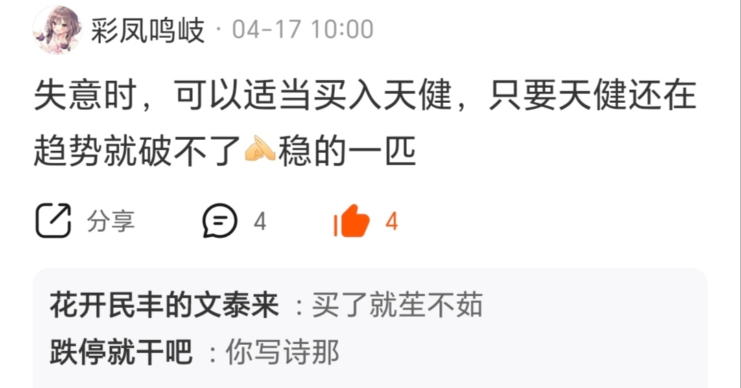 温馨提示: 1.根据《证券法》规定,禁止编造、传播虚假信息或者误导性信息,扰乱证券市场;2.用户在本社区发表的所有资料、言论等仅代表个人观点,与本网站立场无关,不对您构成任何投资建议。用户应基于自己的独立判断,自行决定证券投资并承担相应风险。《东方财富社区管理规定》