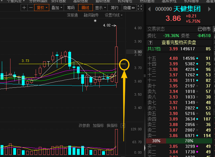 作为板块的跟风杂毛,今天打板的都被困了。若是明天回踩到3.73左右,我认为短线可以低吸。博弈短线。关注我,小户变大户,大家一起来致富。斗阴找我!