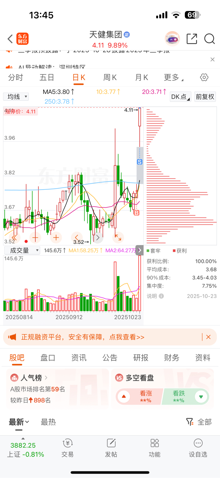 $天健集团(SZ000090)$ 昨天买今天卖,可以了,不去找晋级赛了,15个pk太渺茫了