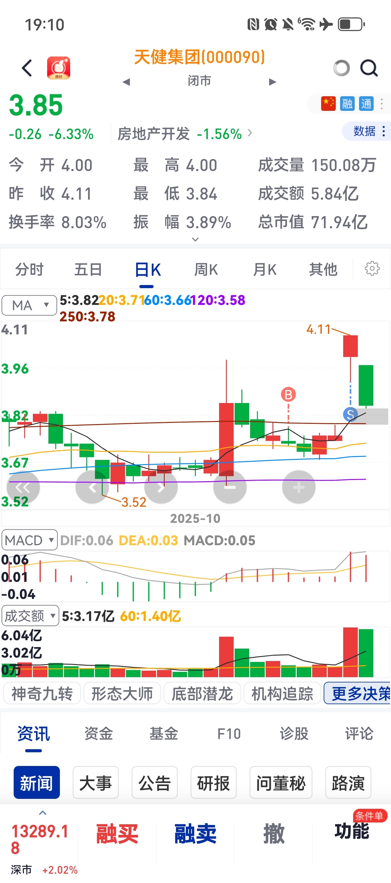 $天健集团(SZ000090)$ 走势不尽人意啊,昨天卖了一半,今天的另一半还没出,回撤太多,尾盘低吸了一些,如果周一在继续低开短期就不好做了。现在的科技股不死,底部的小票一个都起不来。太恶心了走势。原本以为可以至少平开高走或者直接涨停呢,却又出了最恶心人的走势。
