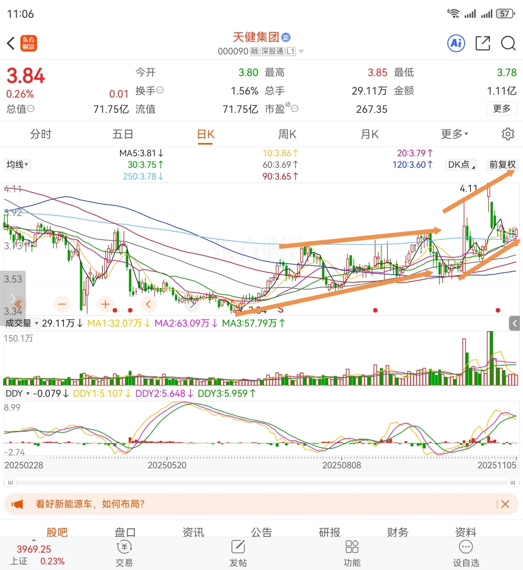 天健目前最大的利好是走出了月线级别逐浪下跌的趋势低点,从今往后逐浪上升。