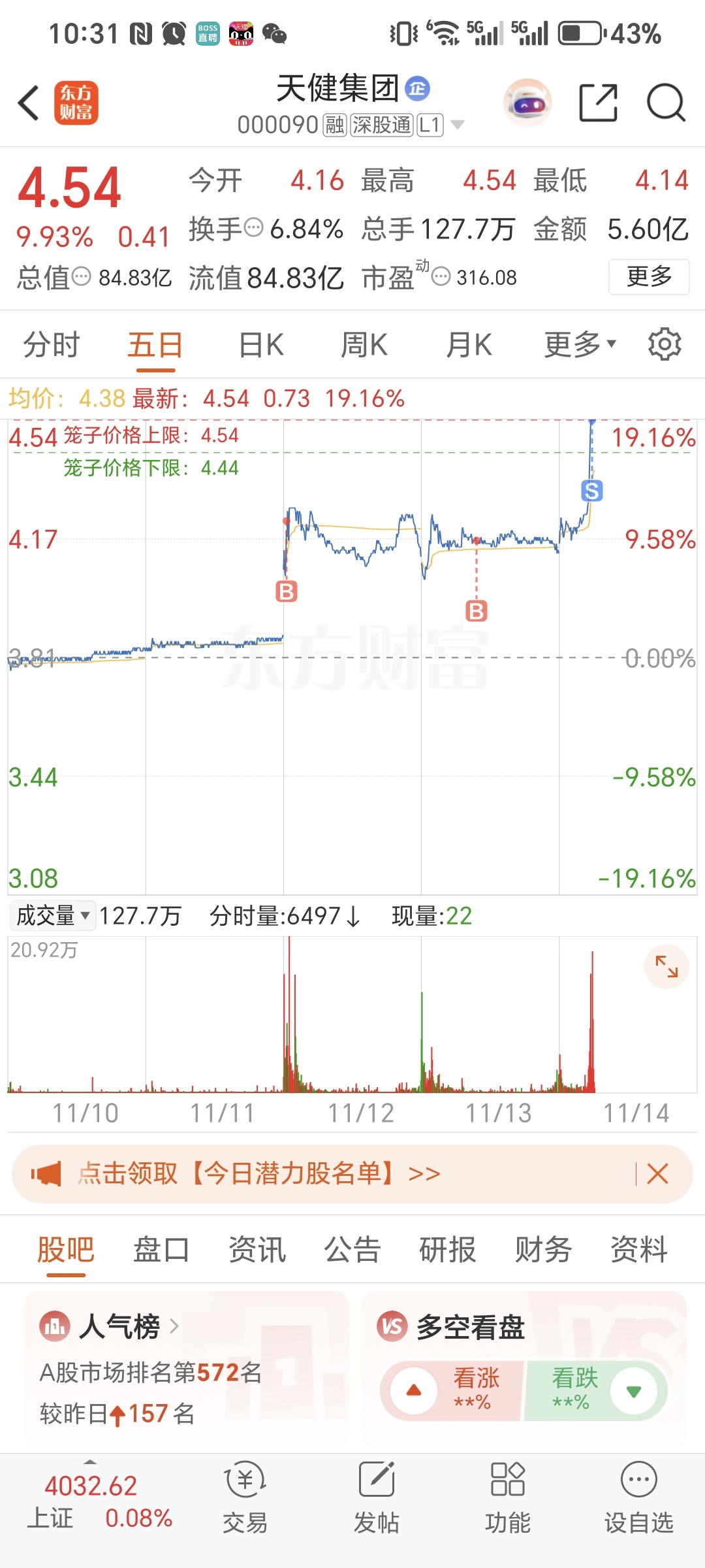 $天健集团(SZ000090)$ 留下的发财