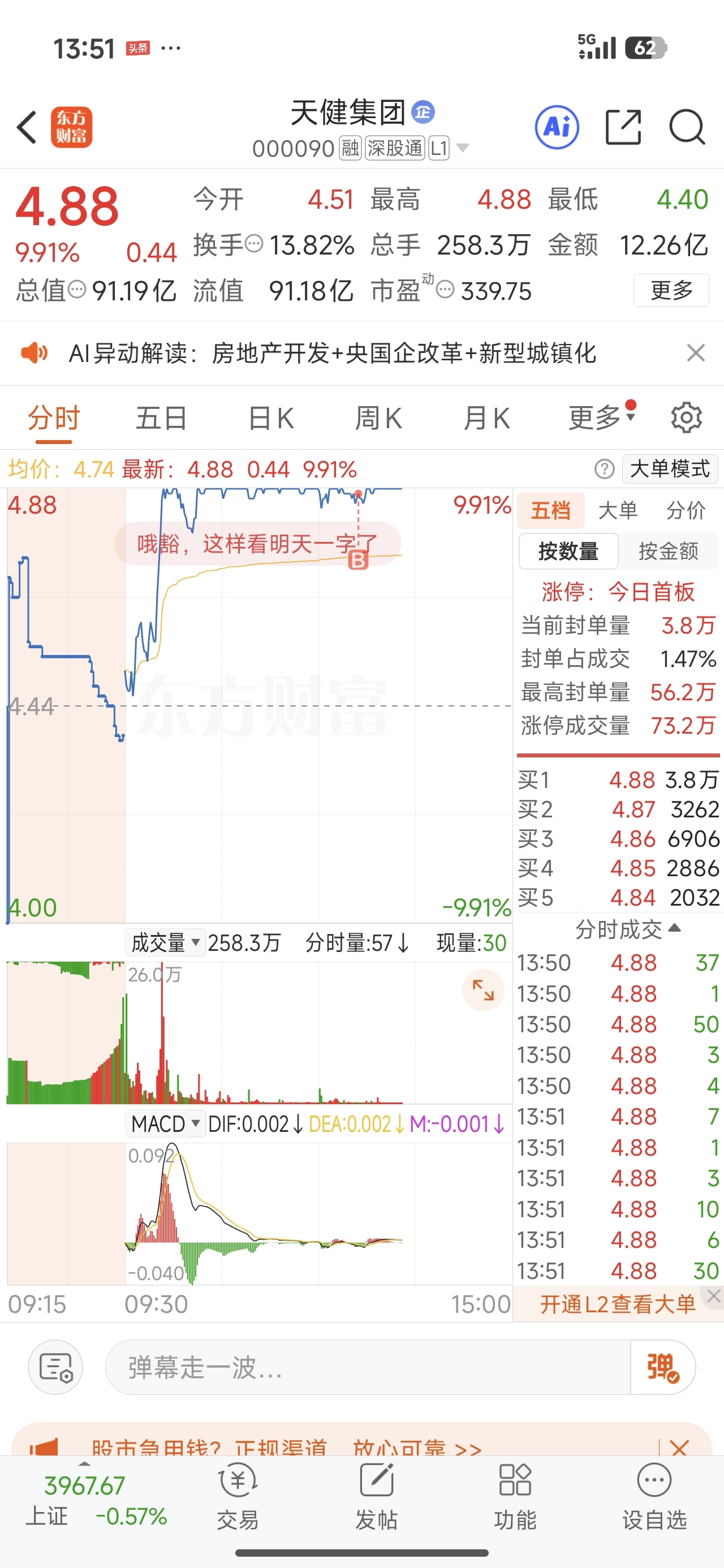 $天健集团(SZ000090)$ 个人建议烂板成妖,是龙是虫明天就知道了