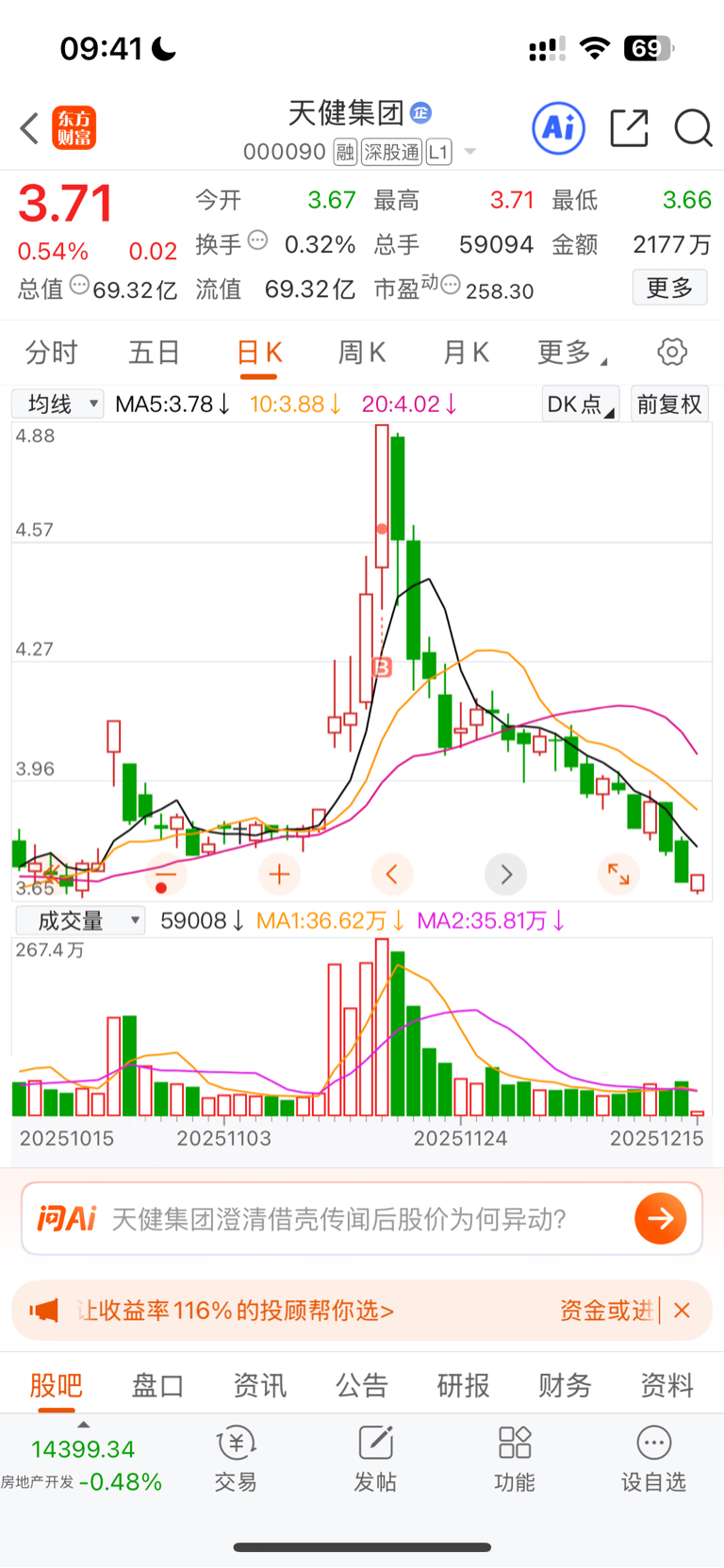 $天健集团(SZ000090)$ 买在了最高点,一路下跌