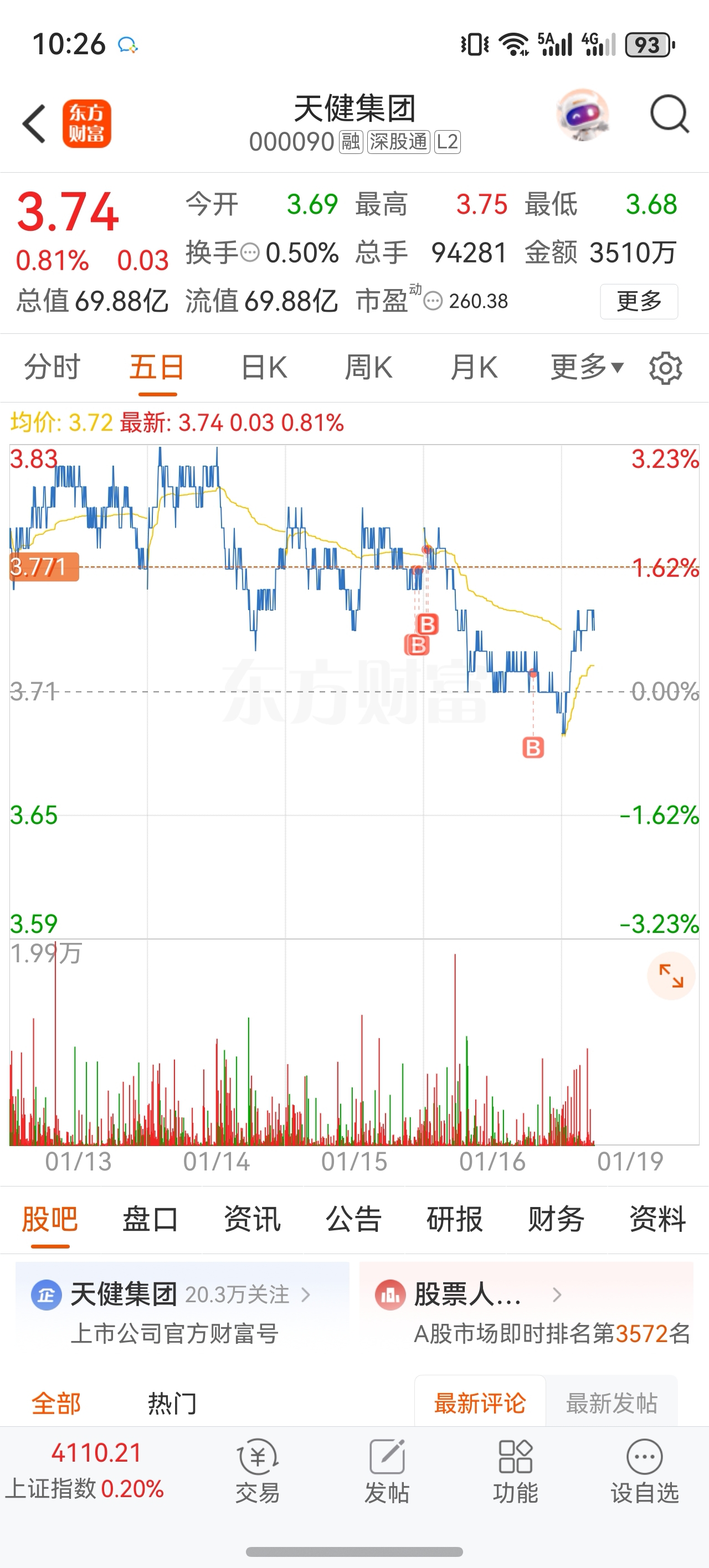 $天健集团(SZ000090)$ 长期看涨,短期震荡或横盘,躺下看看。