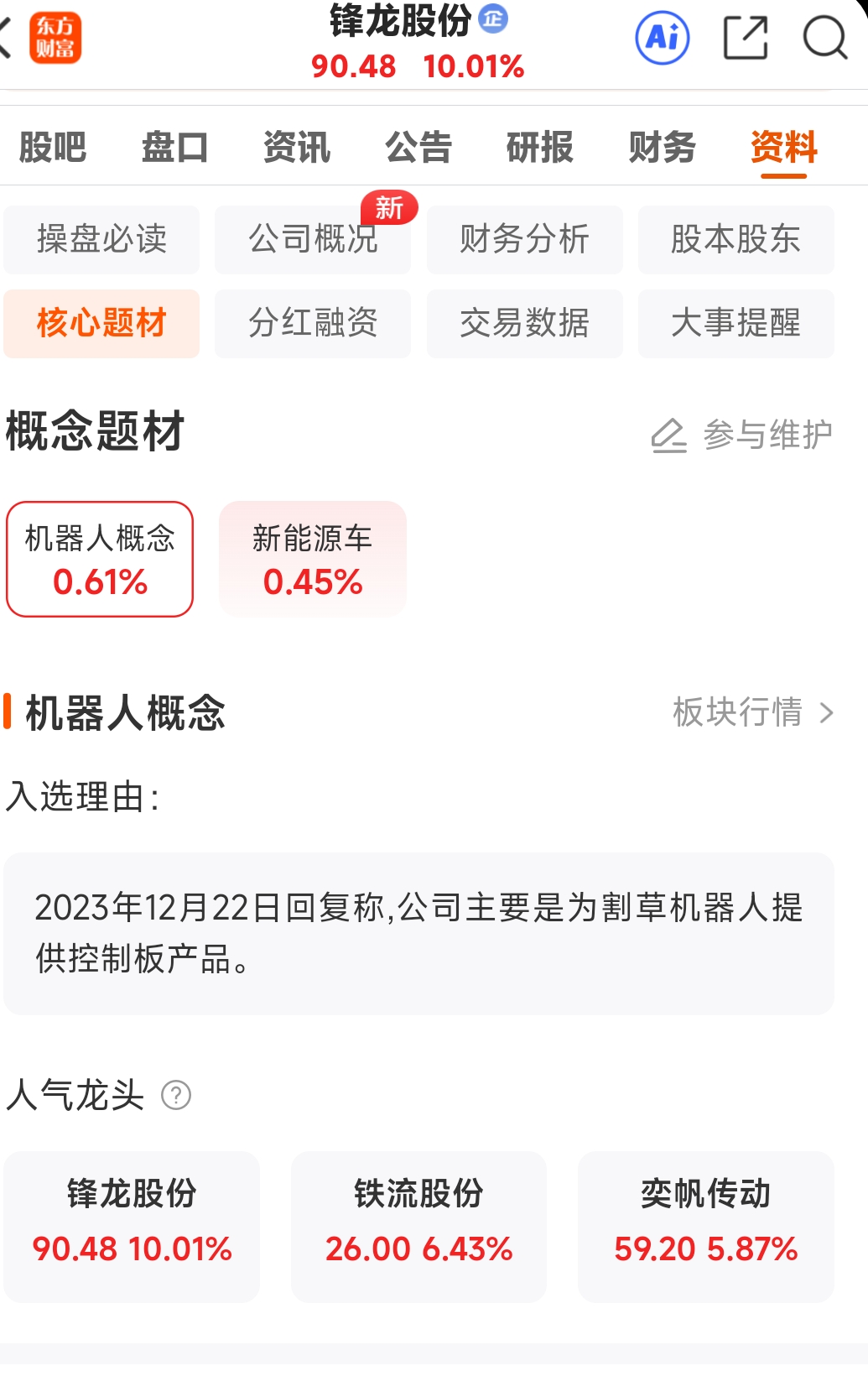 。$机器人概念(BK1090)$ 跟上龙头 $锋龙股份(SZ002931)$ 你来17个一字板也没事,因为你是国资#锋龙股份十七连板!哪些资金在疯狂追买?#