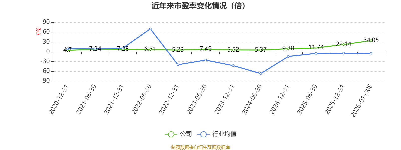 以本次披露业绩预告均值计算,公司近年市盈率(TTM)图如下所示: