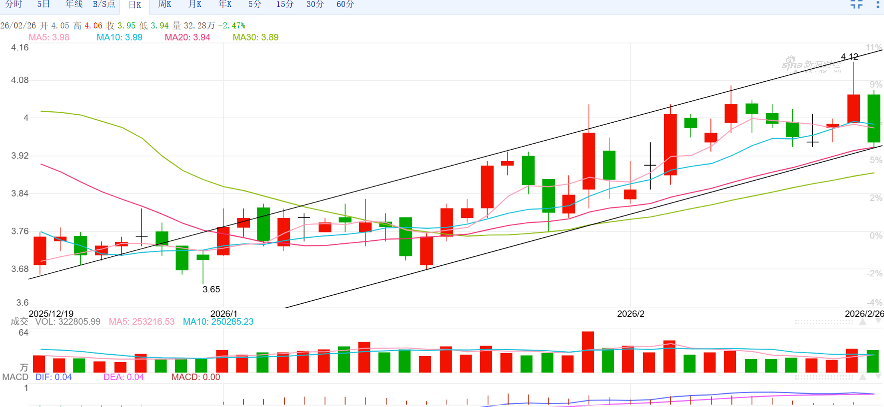 明天不能再跌了,跌破3.93收不上来、就看3.8