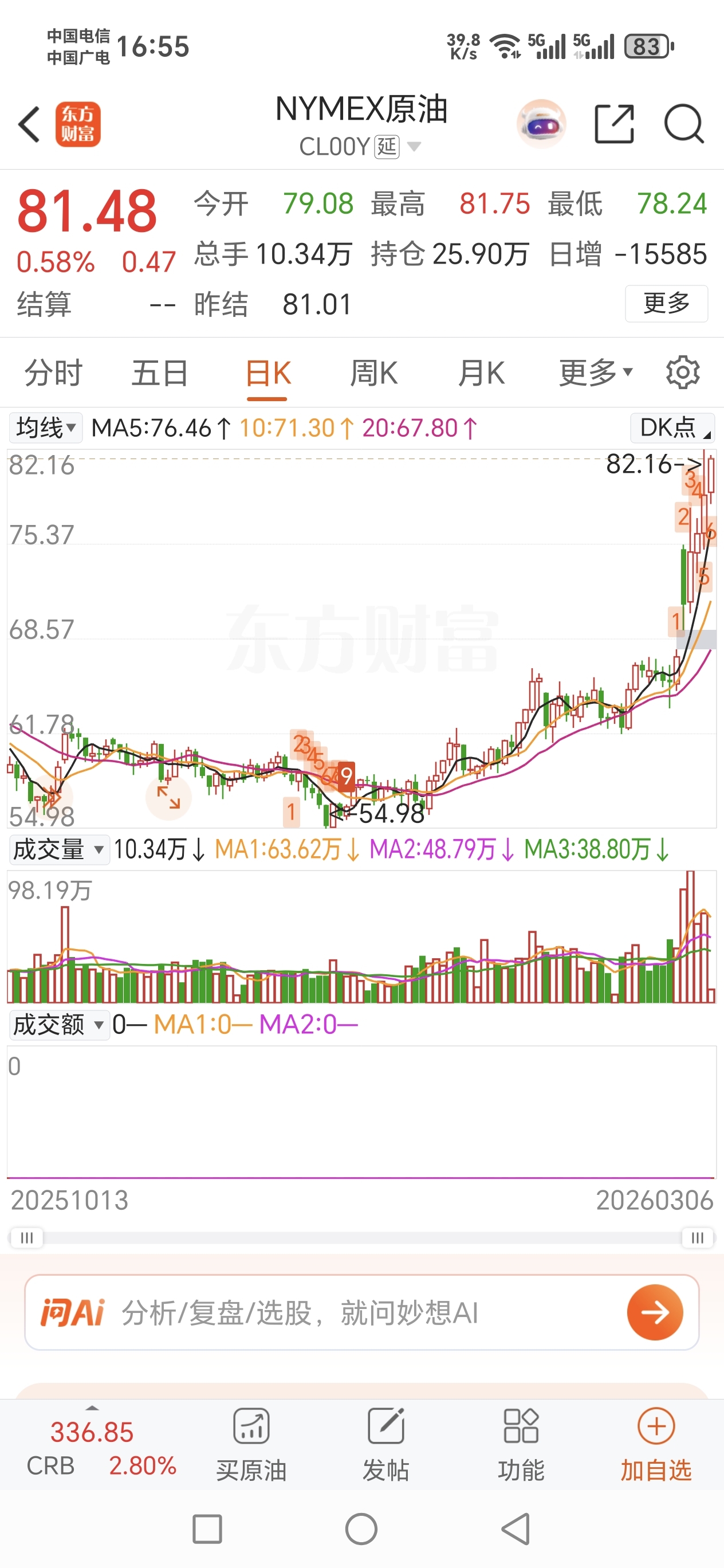 我们油白天跌完了,他们上班了开始干活了