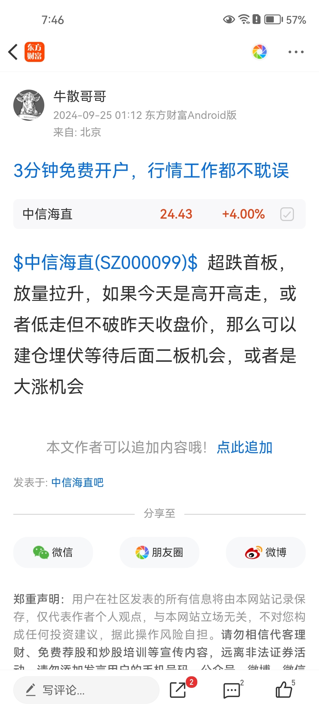$中信海直(SZ000099)$ 记得我九月25号说过吧,回头看看这一波趋势涨了多少了?很少来这里发帖,但一直在,这是备用之用