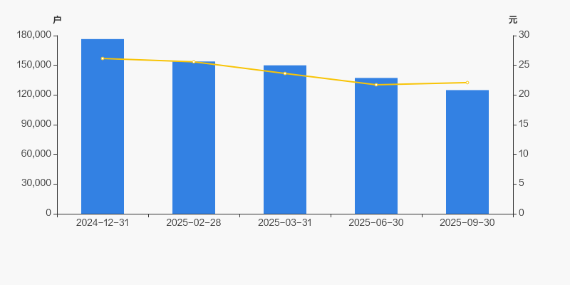 自2024年12月31日以来,公司股东户数连续4期下降,截至目前减幅为29.21%。2024年12月31日至2025年9月30日区间股价下降15.53%。