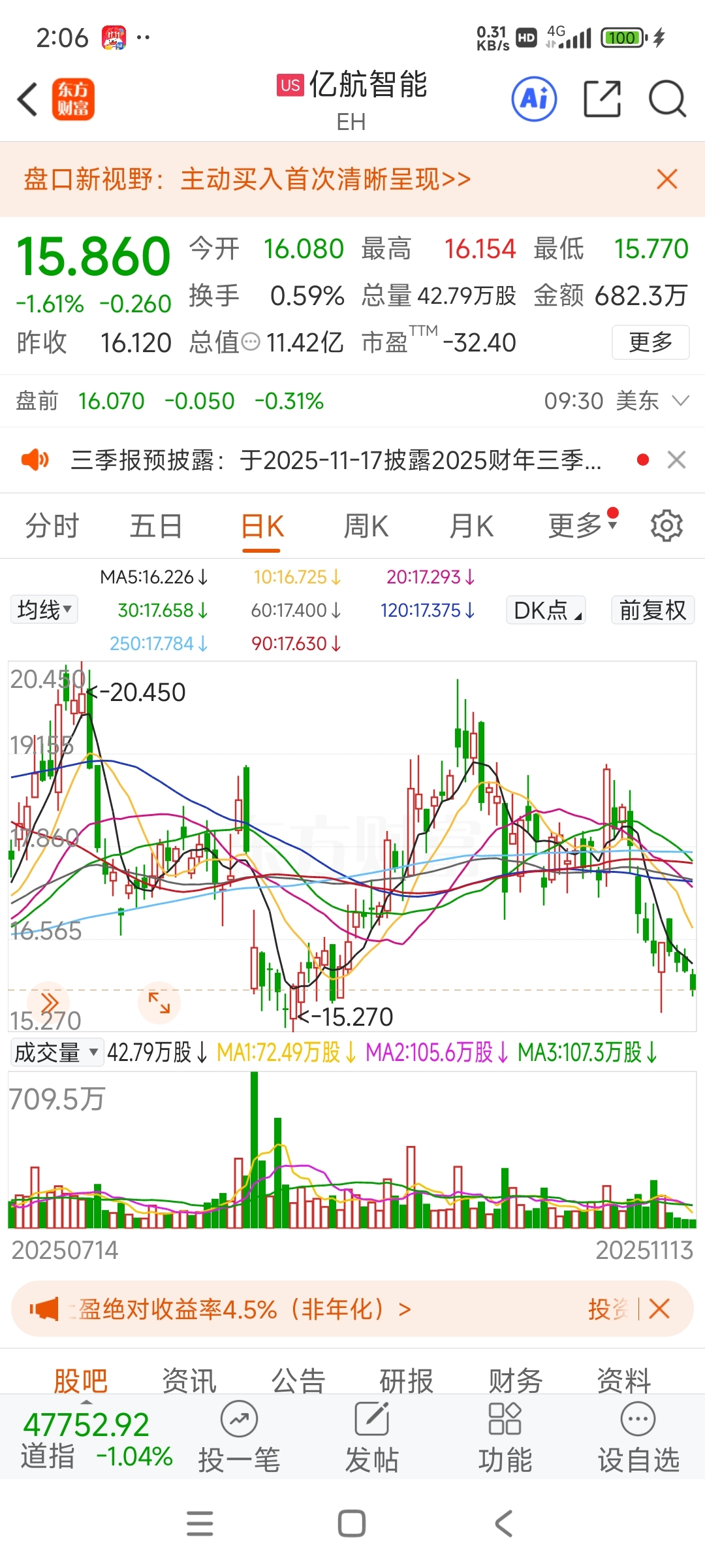 美股“低空”龙头“亿航智能”昨晚继续下探,不停的下探,无休止的下探。强烈建议将“