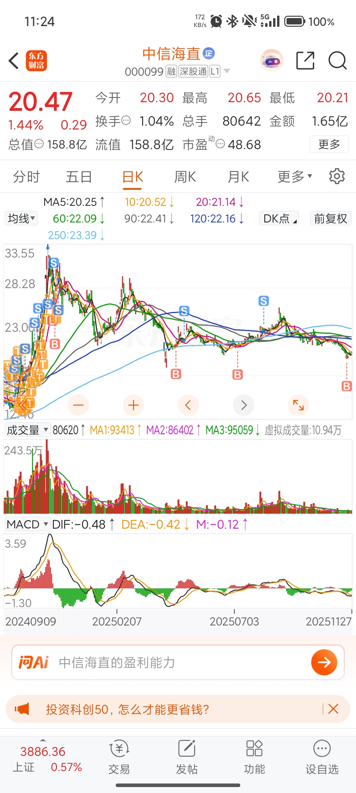 $中信海直(SZ000099)$ 不会玩就好好等待。