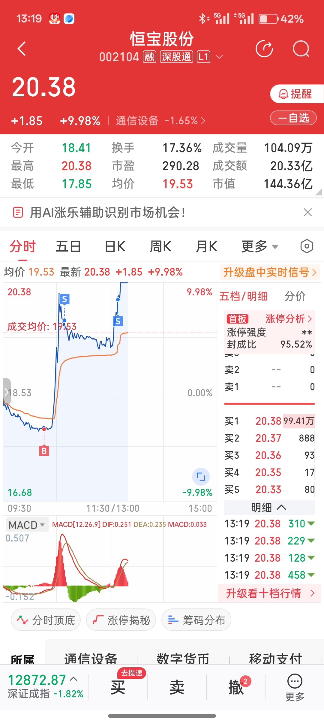 $中信海直(SZ000099)$ 等我明天恒宝出来再抄你。