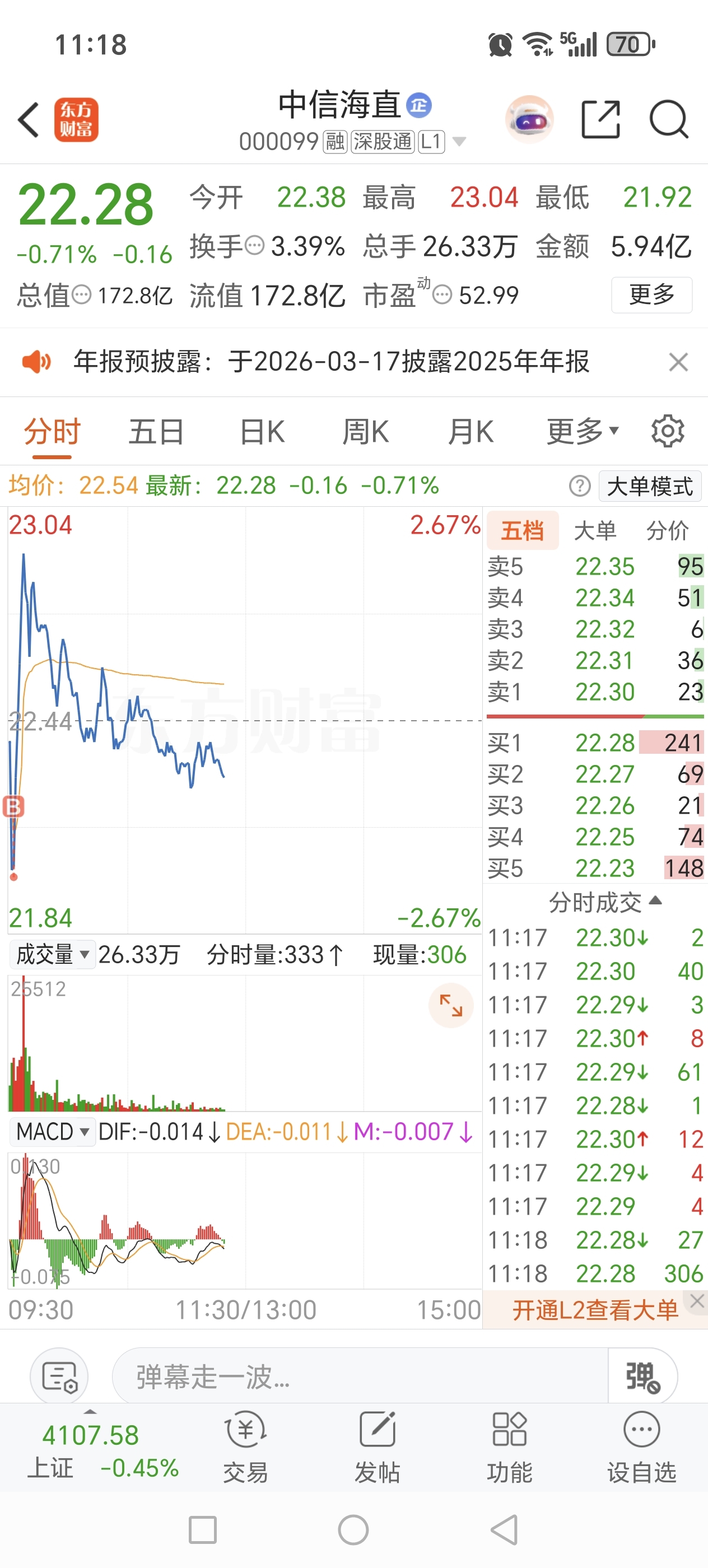 $中信海直(SZ000099)$ 犹豫了一下 没卖,可惜了