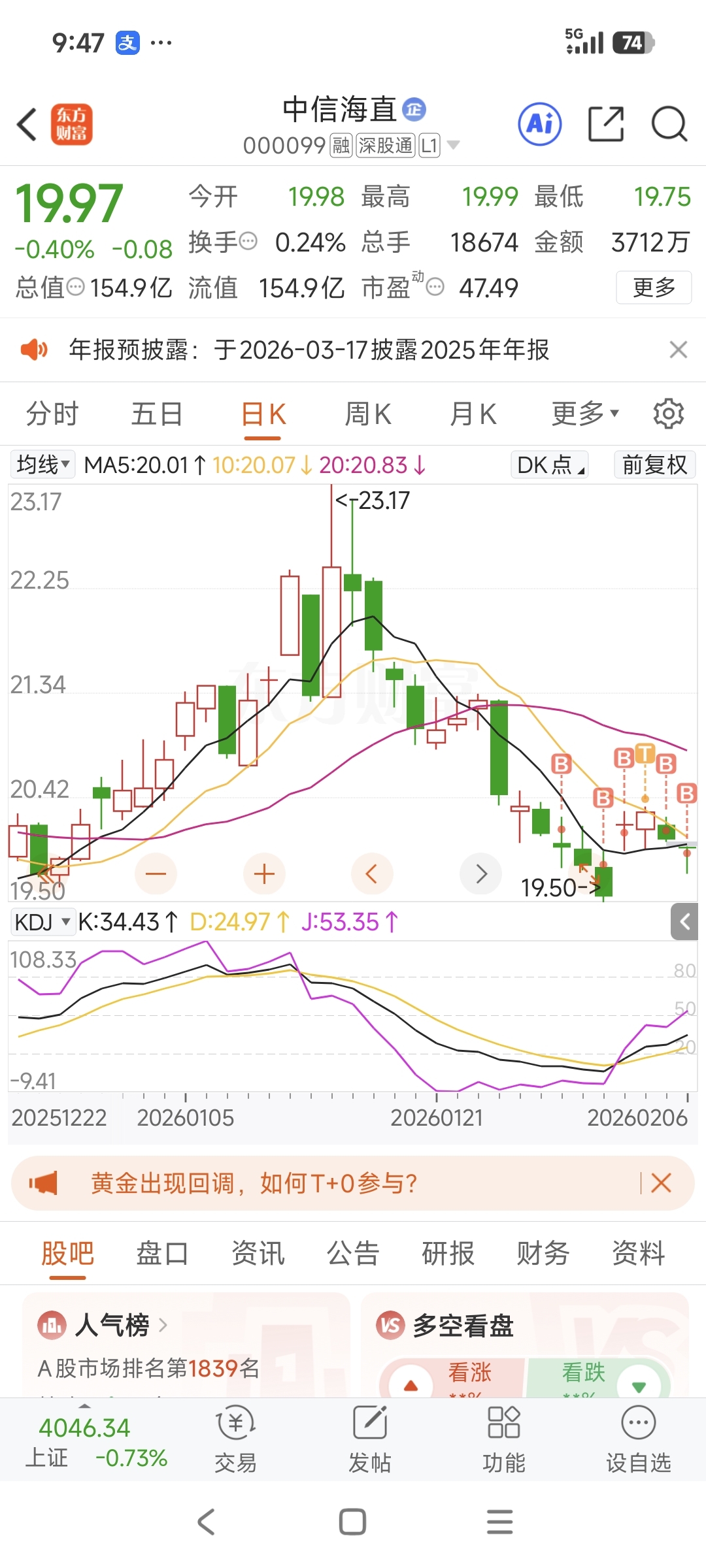 $中信海直(SZ000099)$ 买在无人问津时,继续保持百分之1的亏损