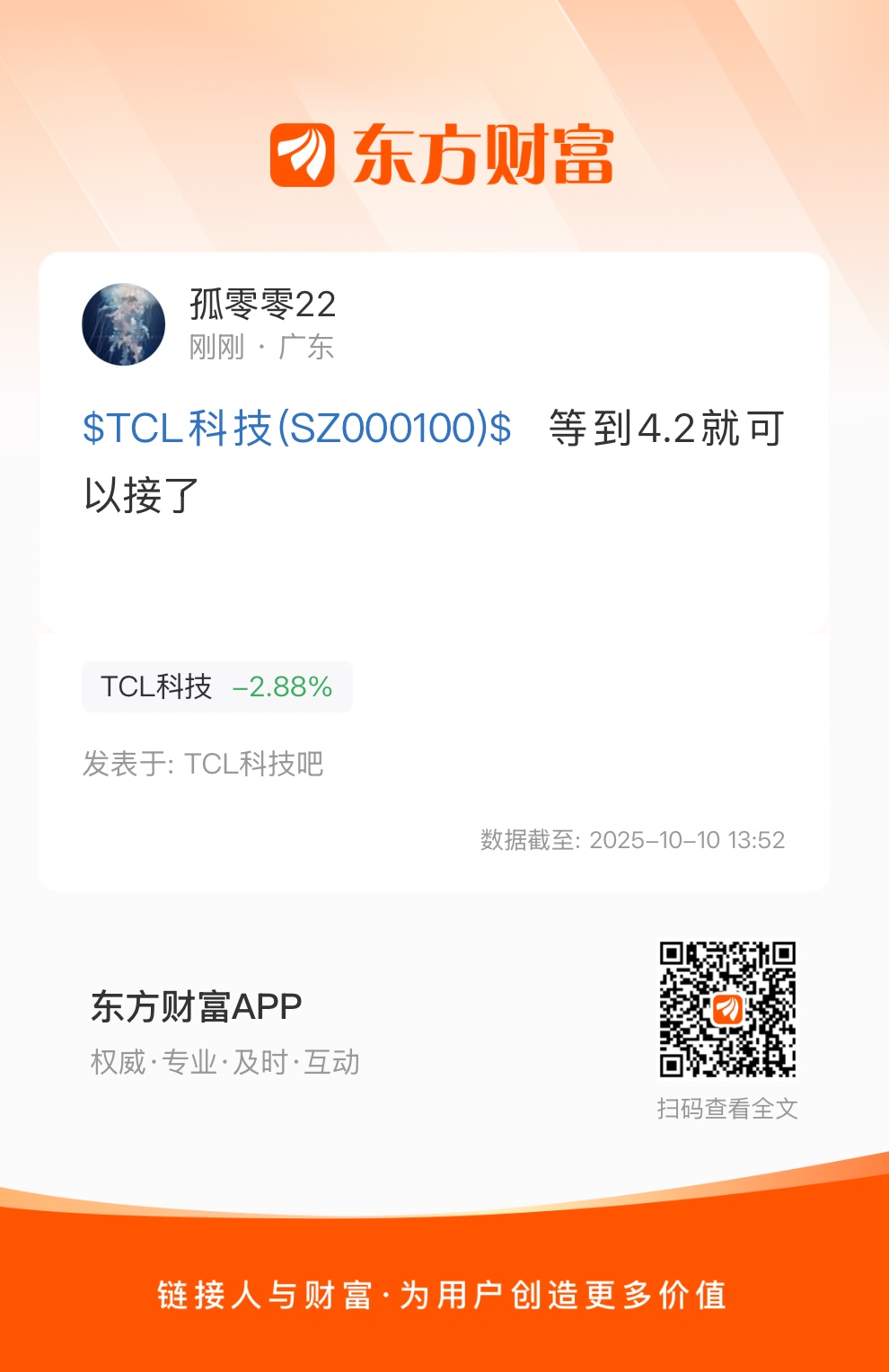 $TCL科技(SZ000100)$  等到4.2就可以接了
