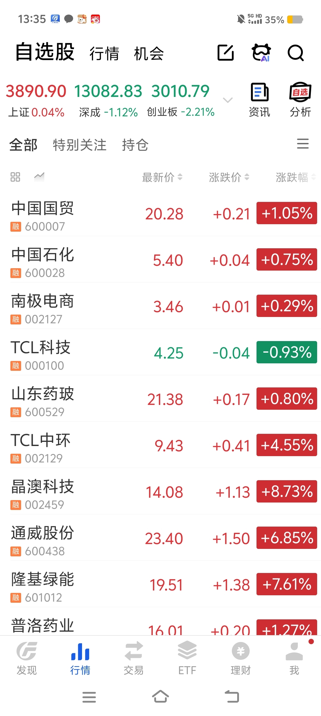 $TCL科技(SZ000100)$ 几十个自选股就这一个是绿的,李东升赶紧升到天上吧!