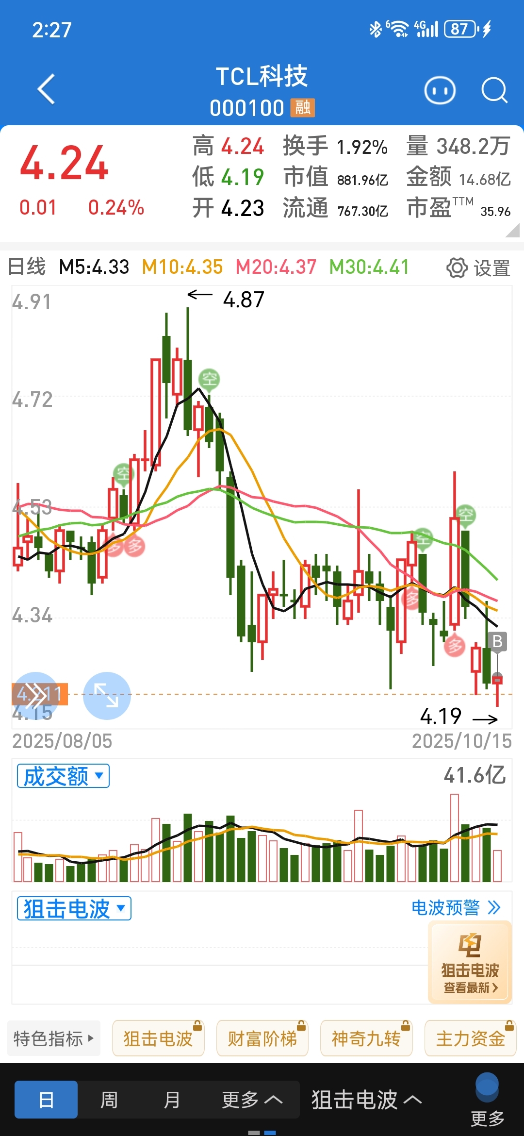 $TCL科技(SZ000100)$ 今天4.21买了近2万股,算是建个首仓吧