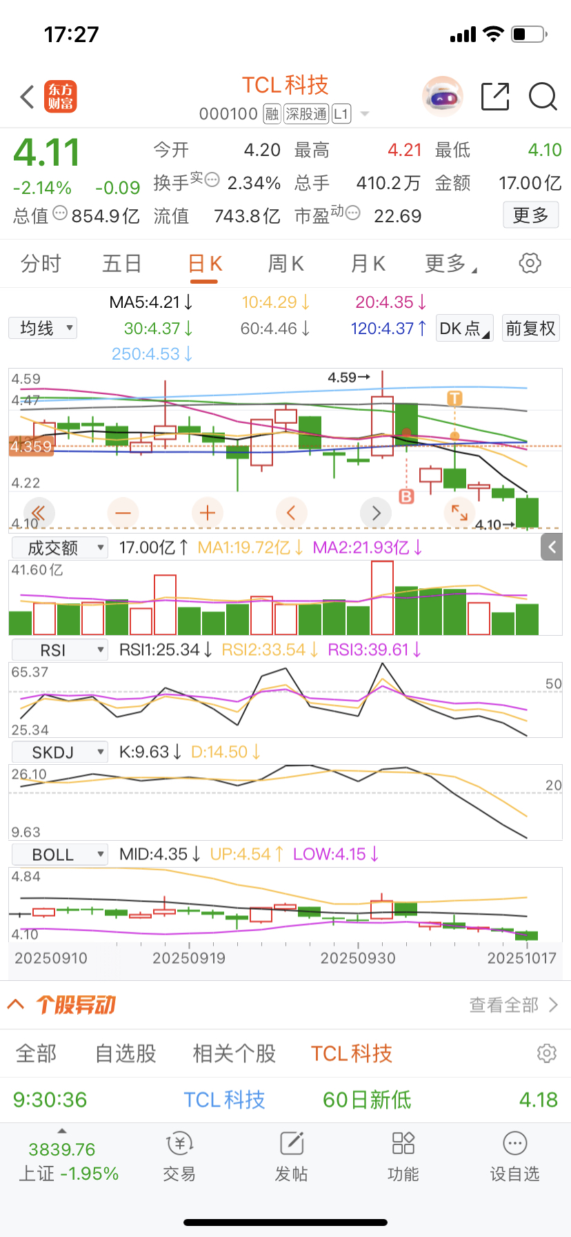 $TCL科技(SZ000100)$ 这票右侧也不稳当啊,难道和中环一个庄,喜欢大破位再回拉的手法?还是周一黑天鹅影响了节奏,止损还是没严格执行,下周再观察两天
