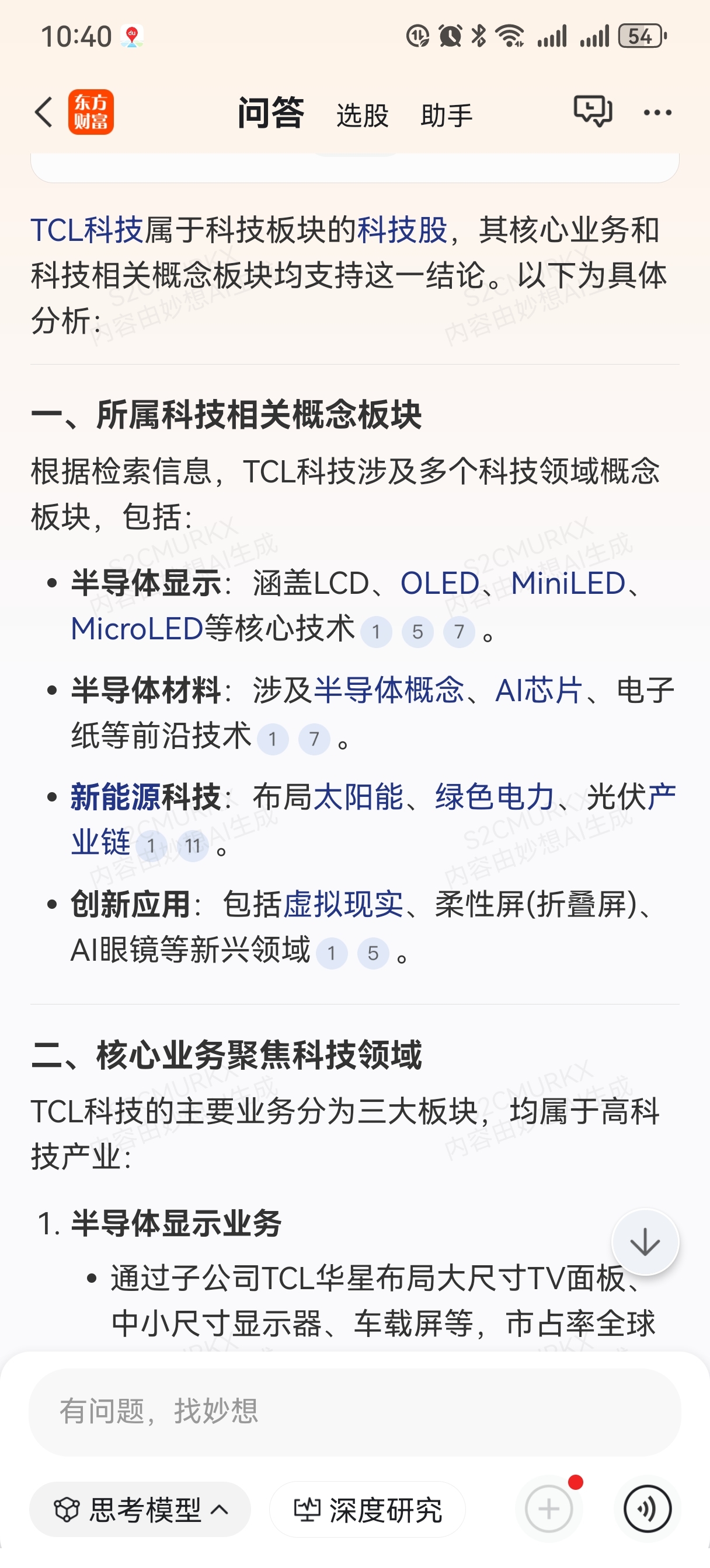 TCL科技是科技板块的核心标的,这是AI的解答,不信请看~~~