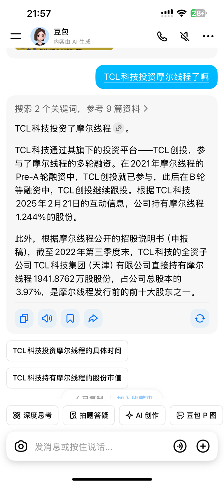 TCL科技投资了摩尔线程,消息可靠吗?