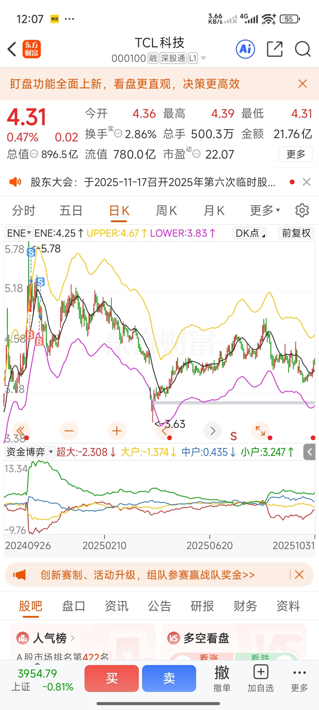 $TCL科技(SZ000100)$ 去年开户买的第一支票 一年了还没超过去
