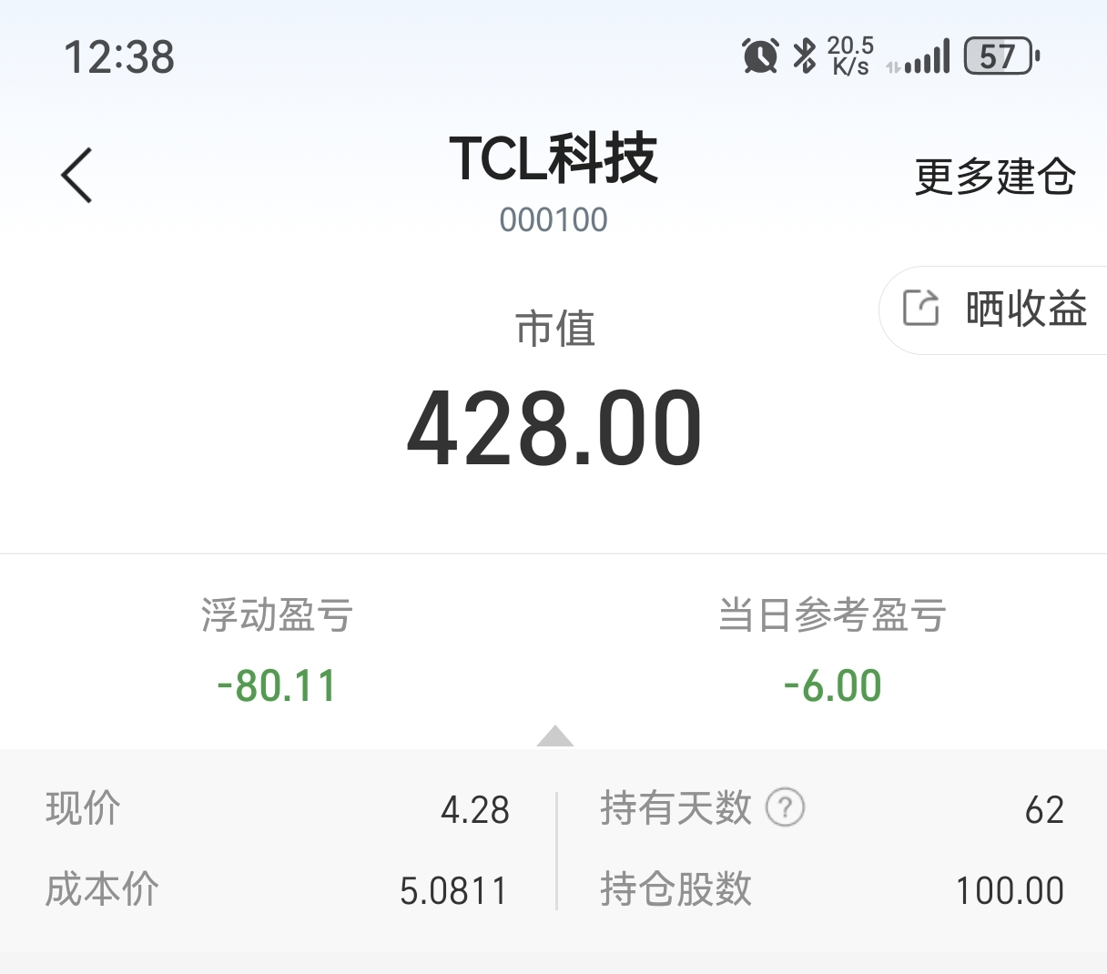 $TCL科技(SZ000100)$ 亏麻了,亏了15.77%