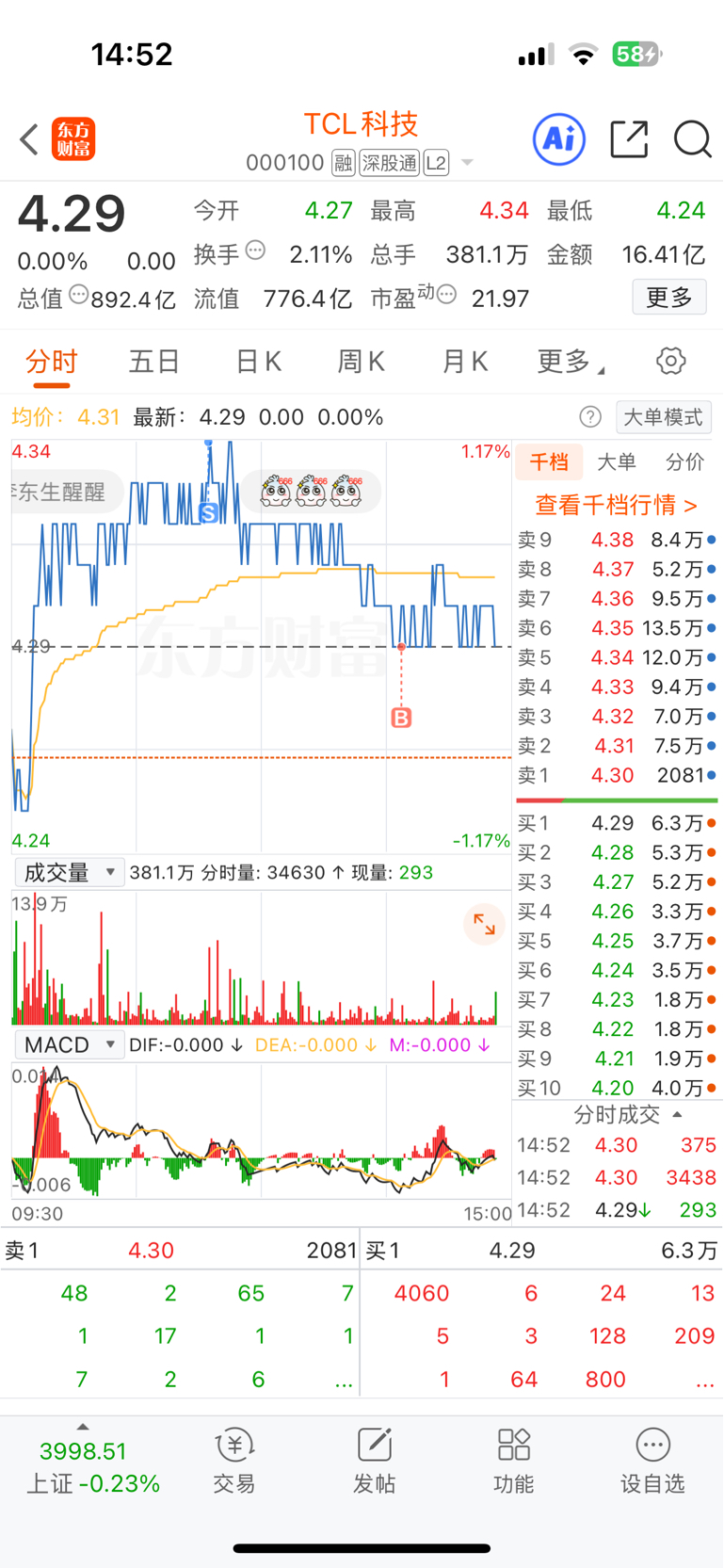 $TCL科技(SZ000100)$ 哟,还让我买到了
