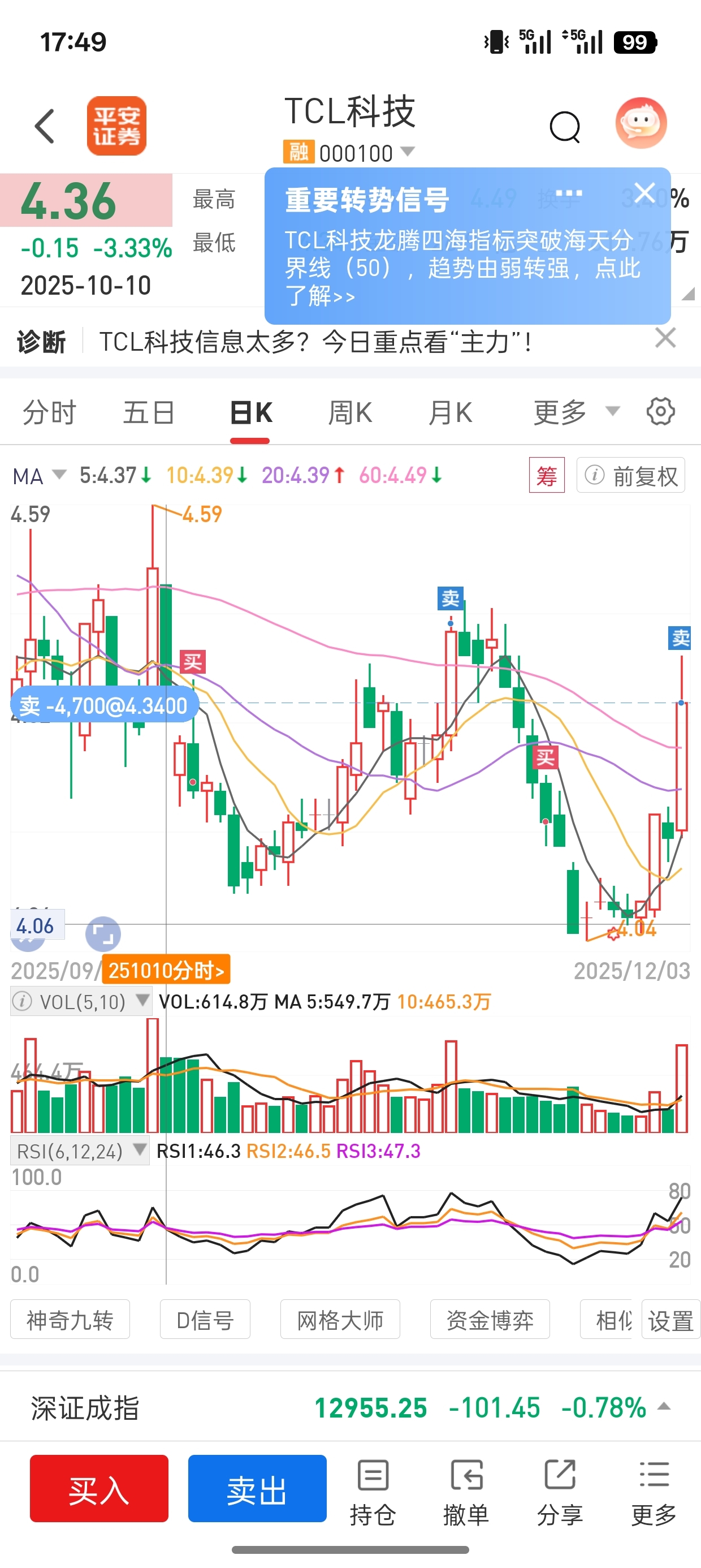 $TCL科技(SZ000100)$ 今天跑了,留下的发财