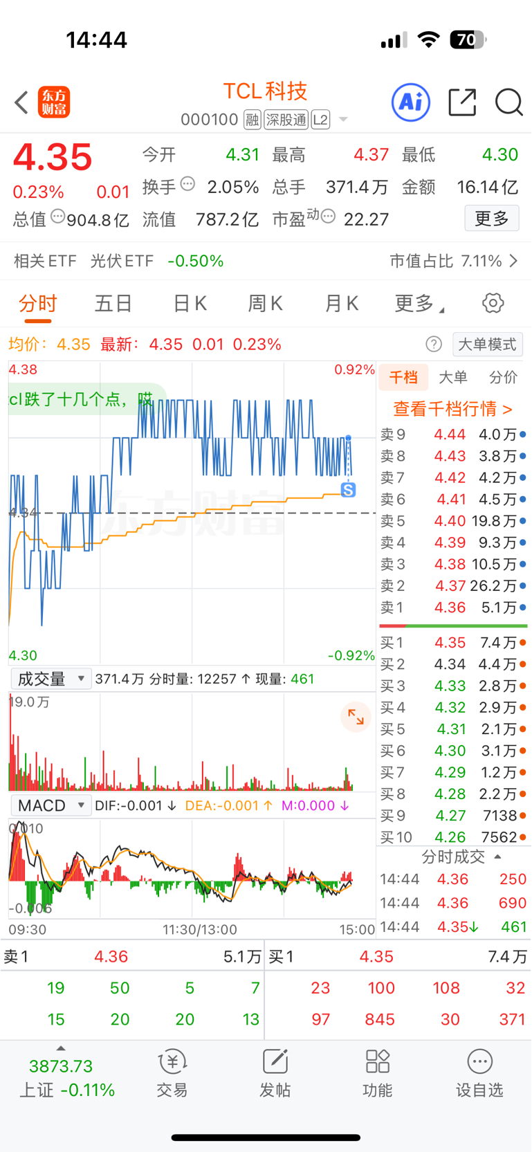 $TCL科技(SZ000100)$ 37居然卖不掉,算了,还是先跑了毕竟涨2天了
