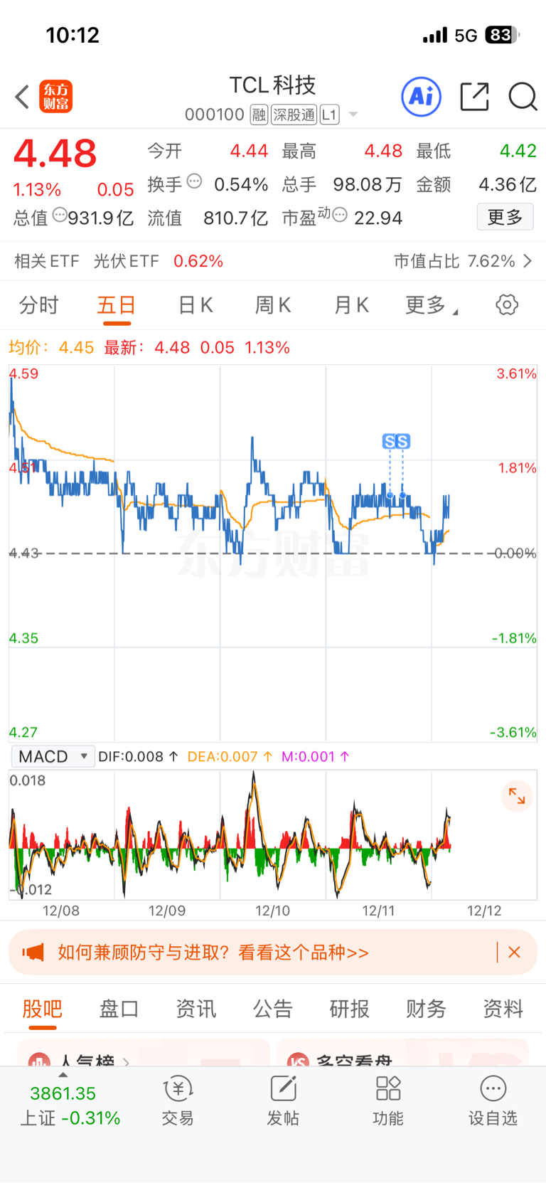$TCL科技(SZ000100)$ 丢你快点下来!不想原价接!